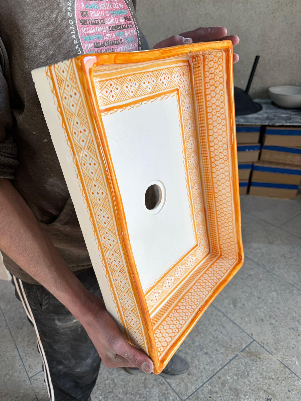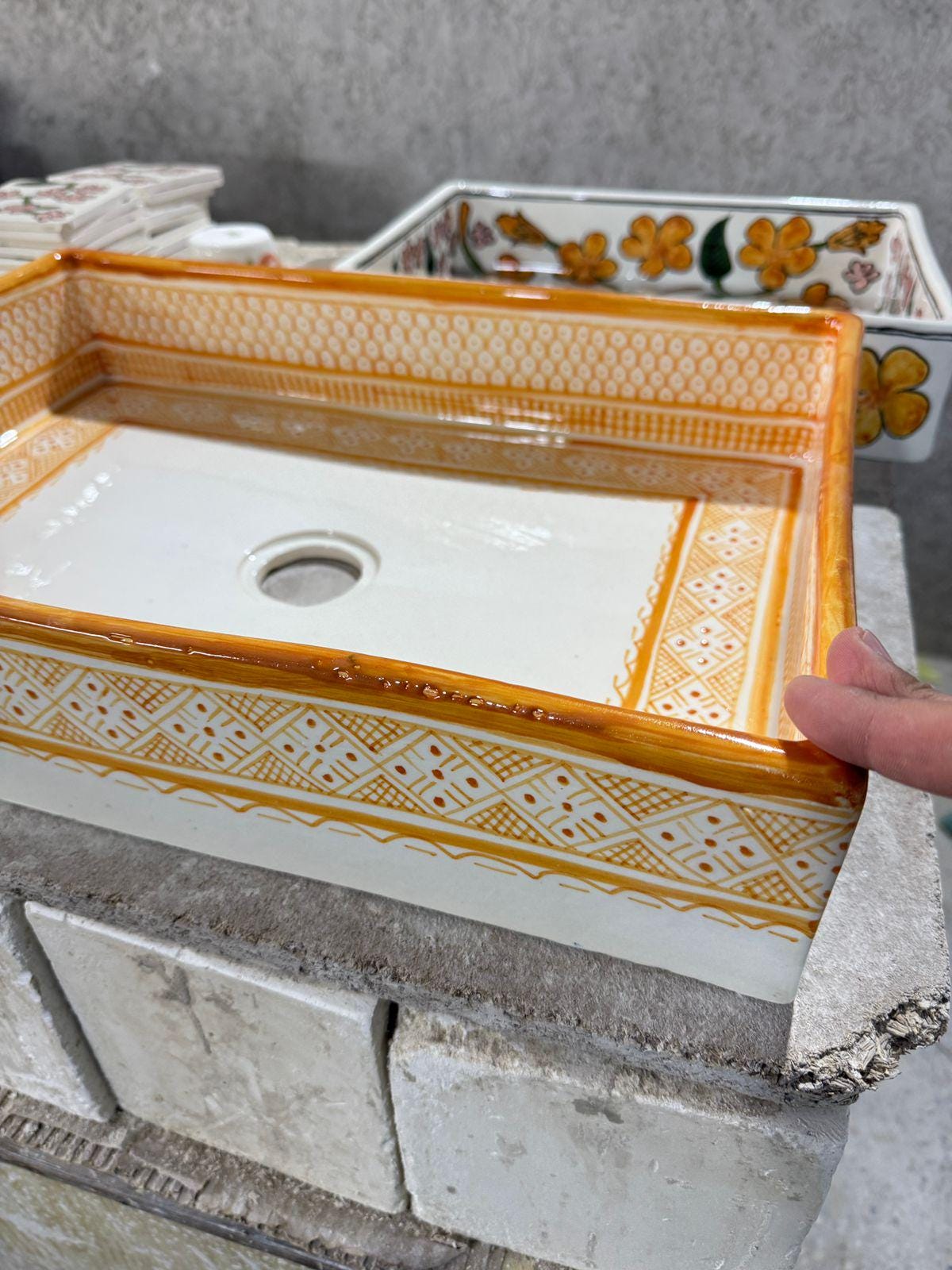 This beautiful Moroccan rectangular sink is handmade by skilled artisans using high-quality ceramic. Featuring traditional hand-painted designs and a smooth glazed finish, it is both durable and easy to clean. Perfect for kitchens, bathrooms, or powder rooms, it adds a unique touch of Moroccan charm to any space. The sink comes with both silver and copper drains included for free. If you need a different size, feel free to contact us.