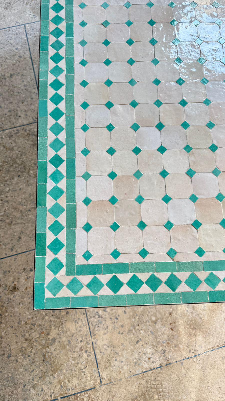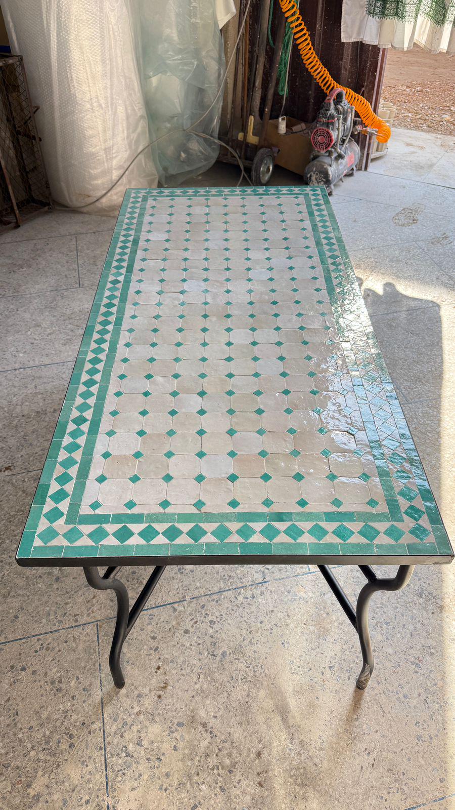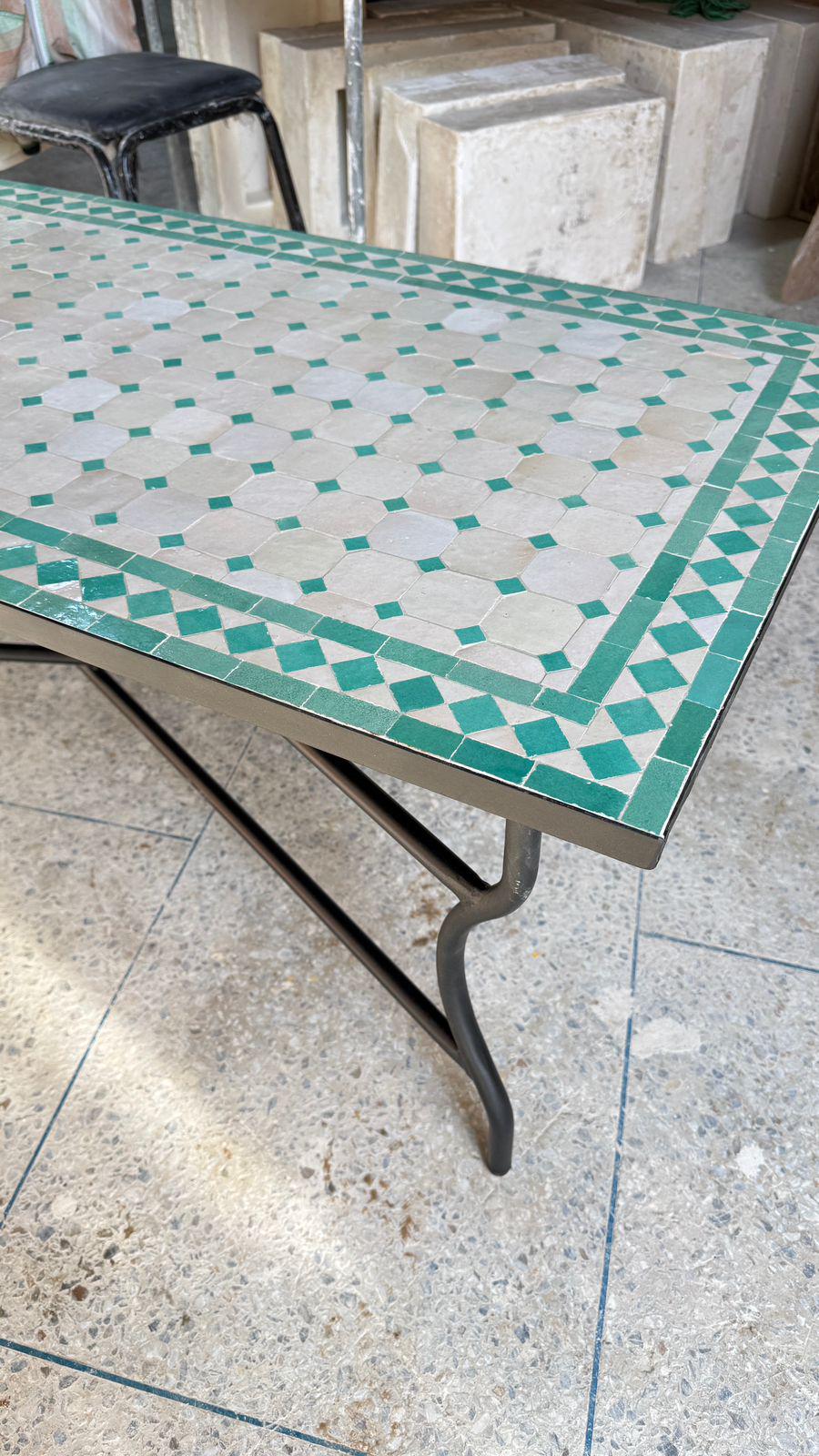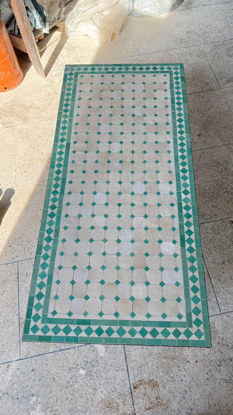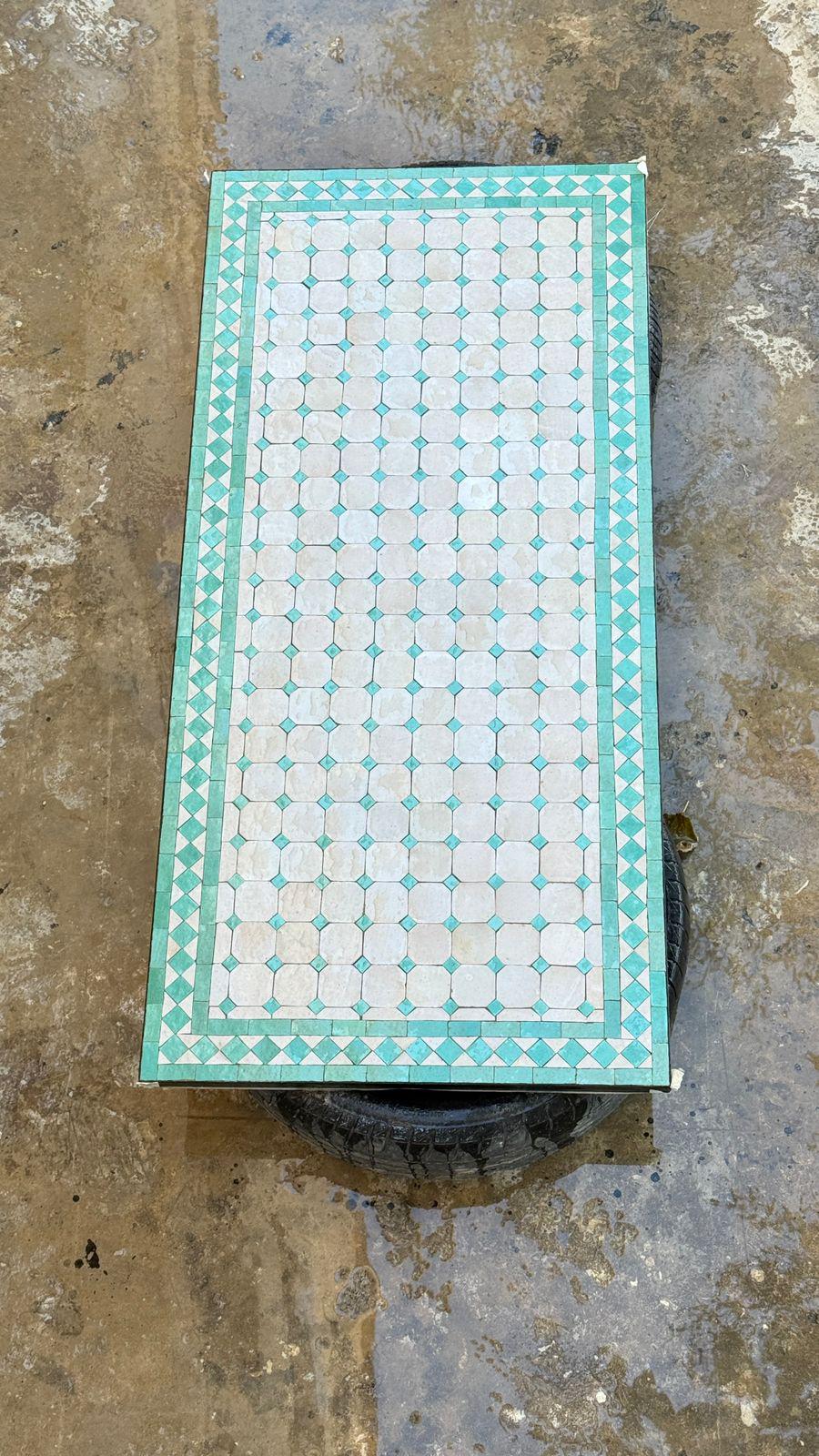 Handmade Moroccan Mosaic Bistro Table: Indoor/Outdoor Green Rectangular Table.