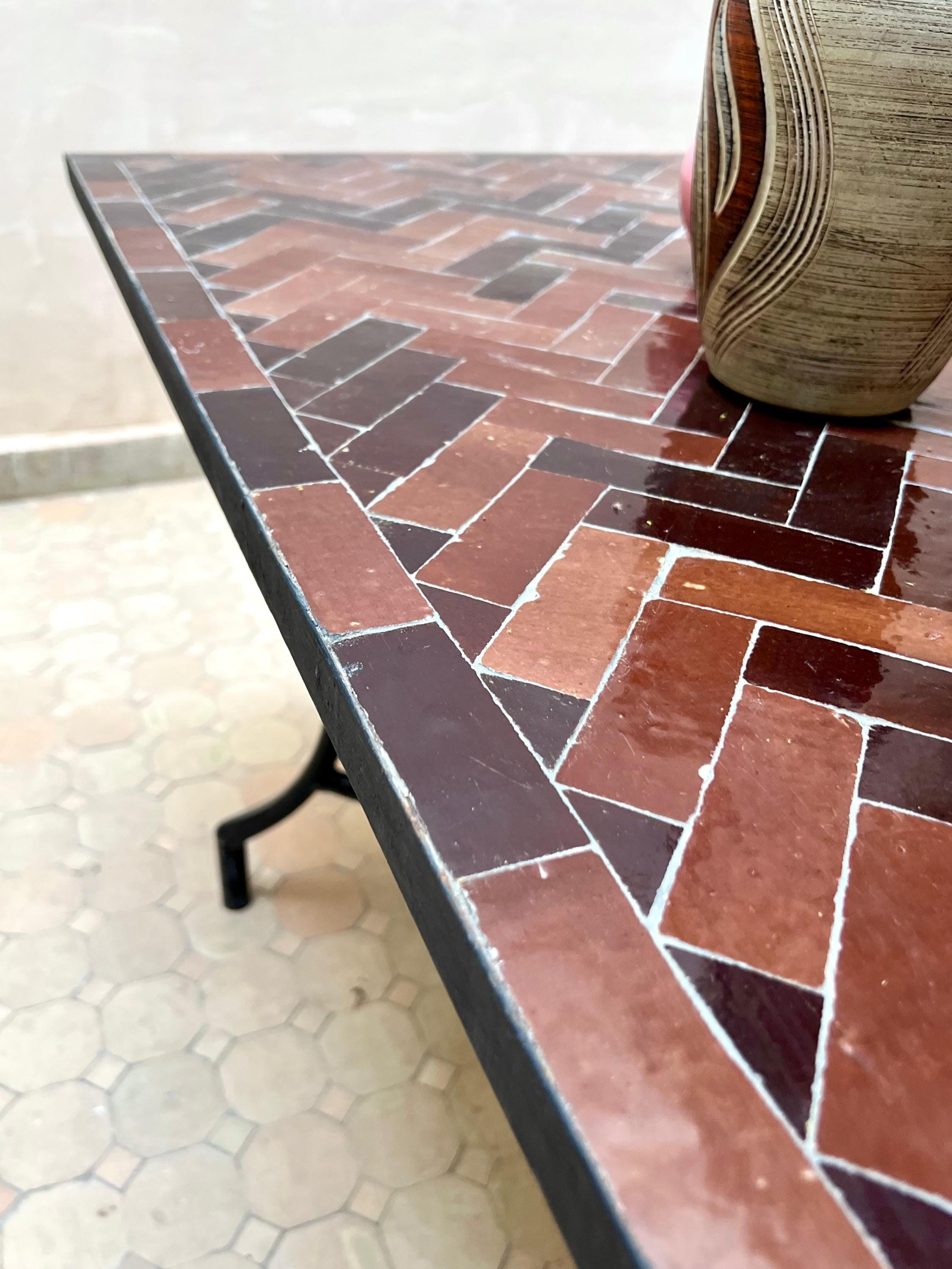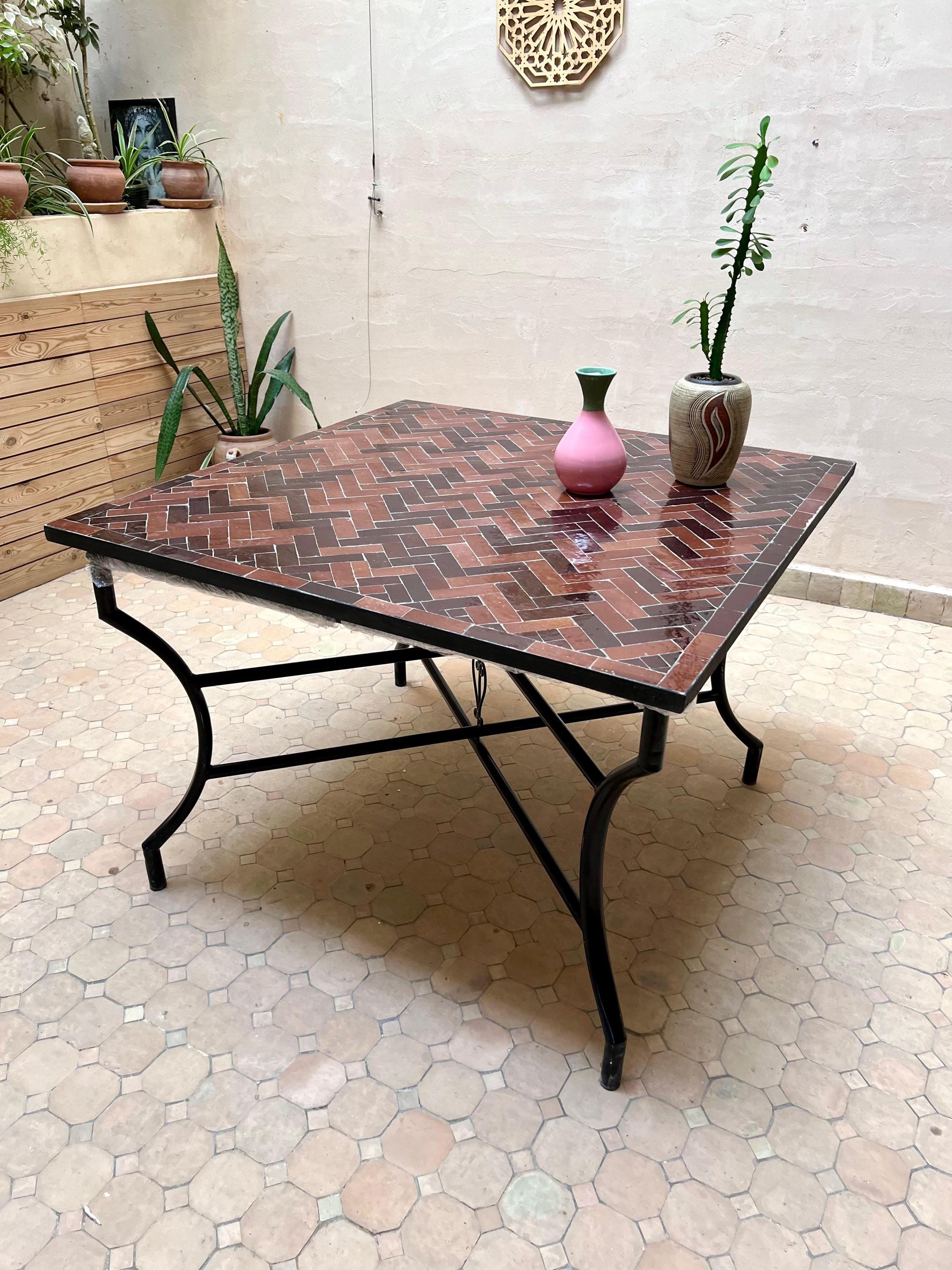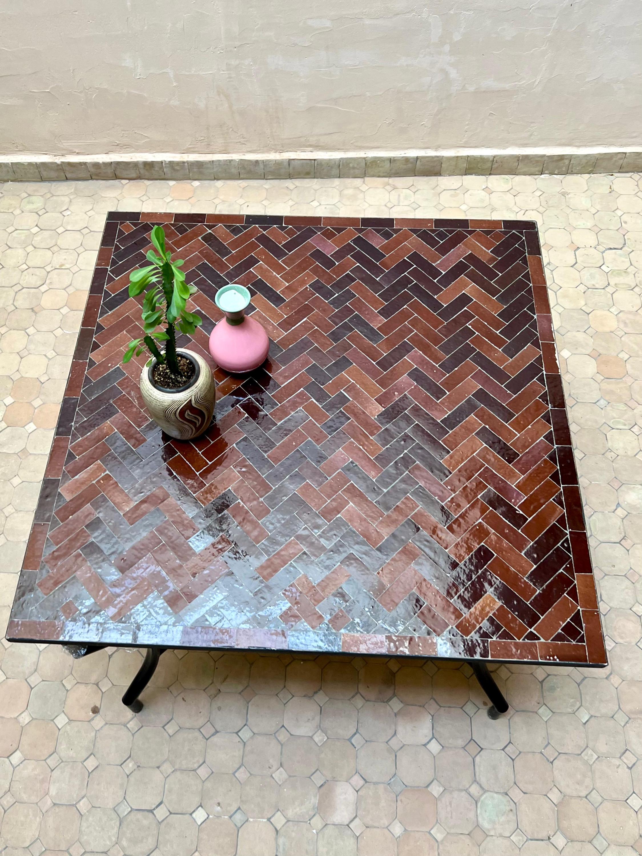Handmade Moroccan Mosaic Table: Brown Zellige Tile Coffee Table