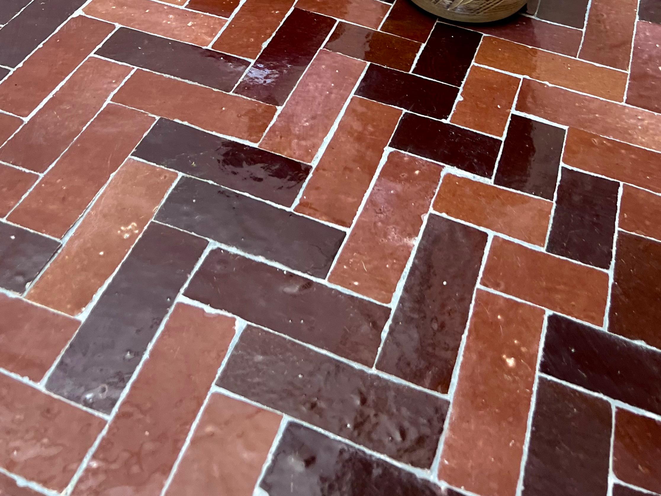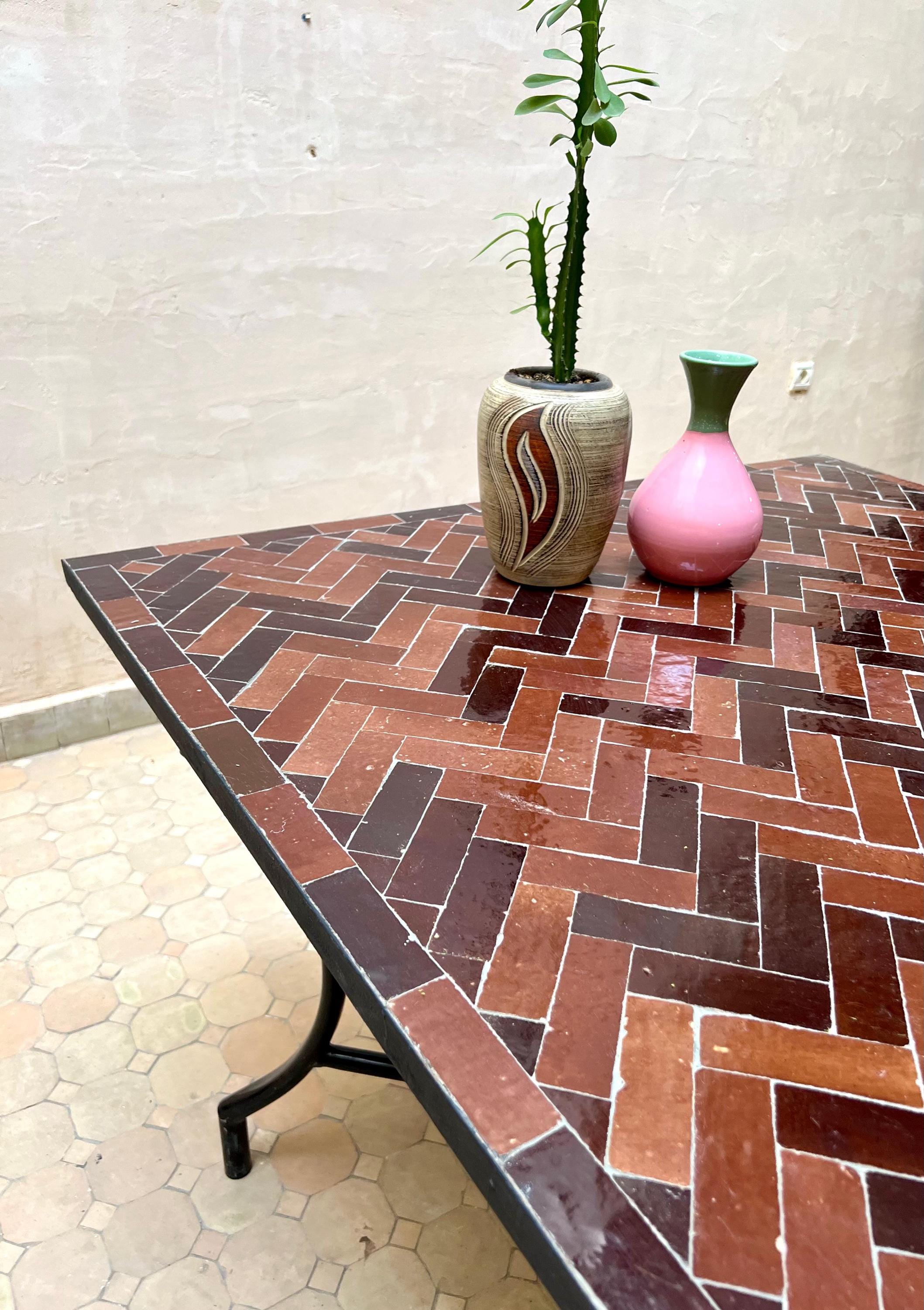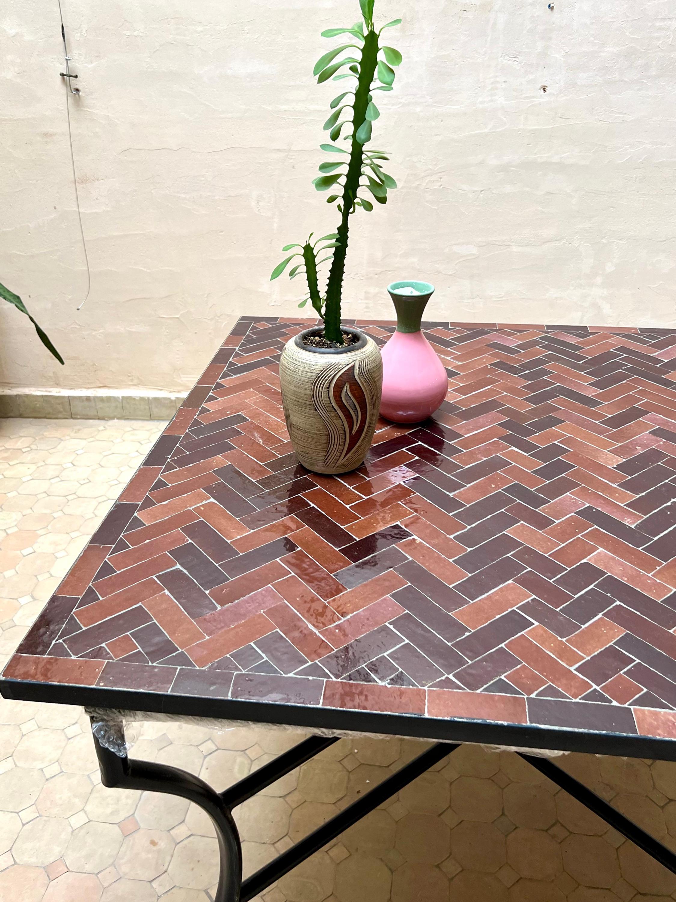 Handmade Moroccan Mosaic Table: Brown Zellige Tile Coffee Table