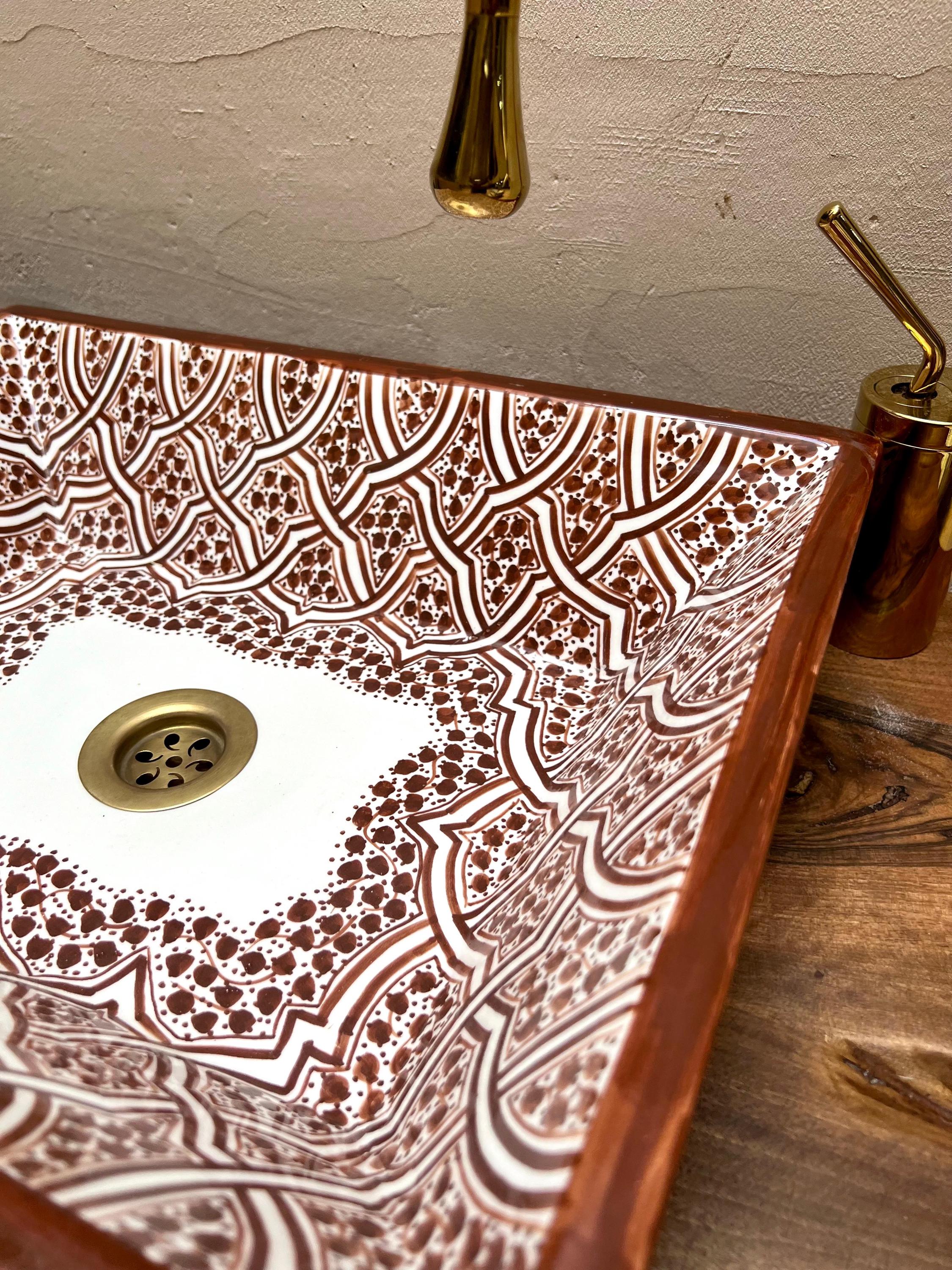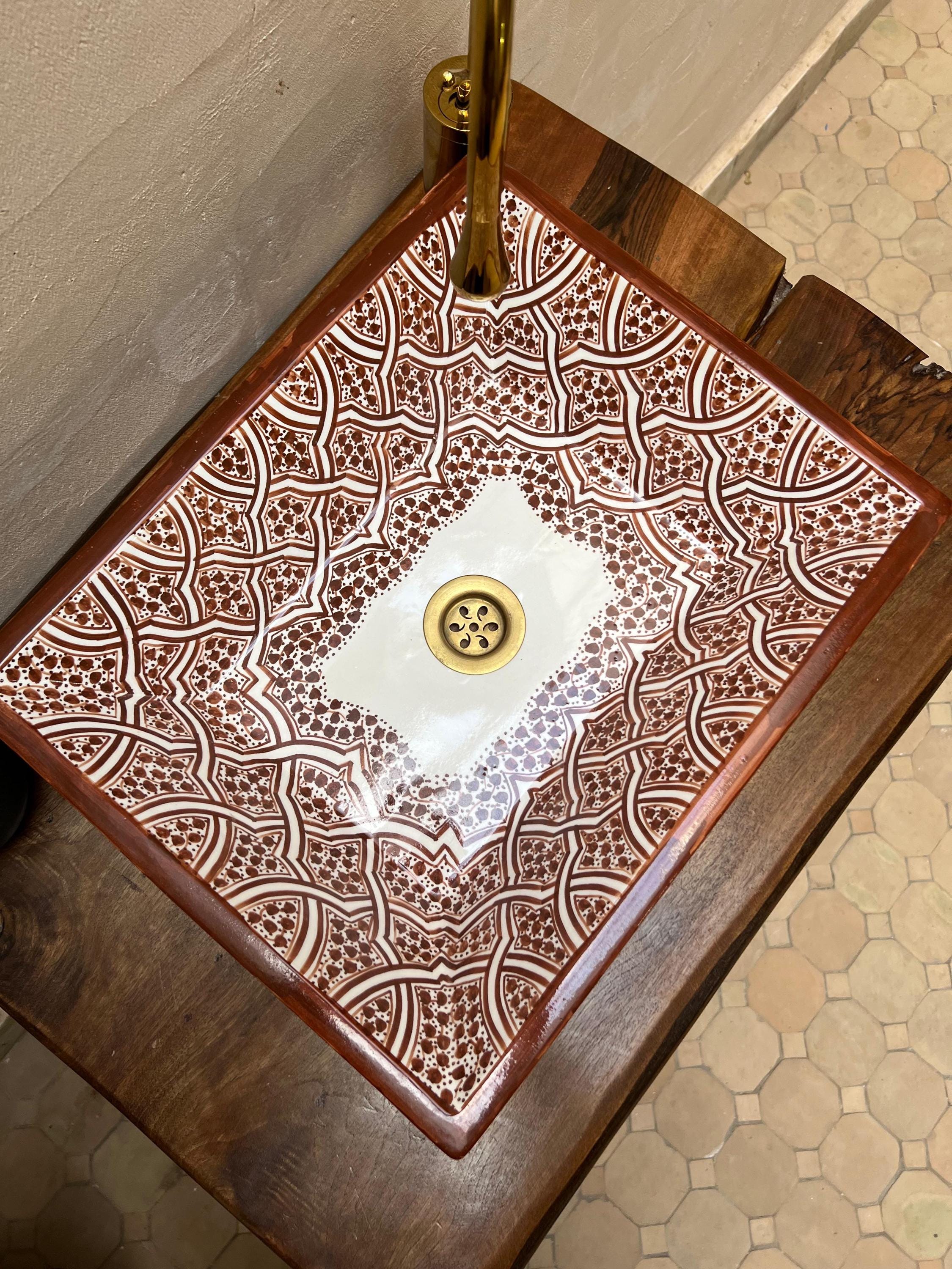 Handmade Moroccan Ceramic Sink: Brown Bug Design