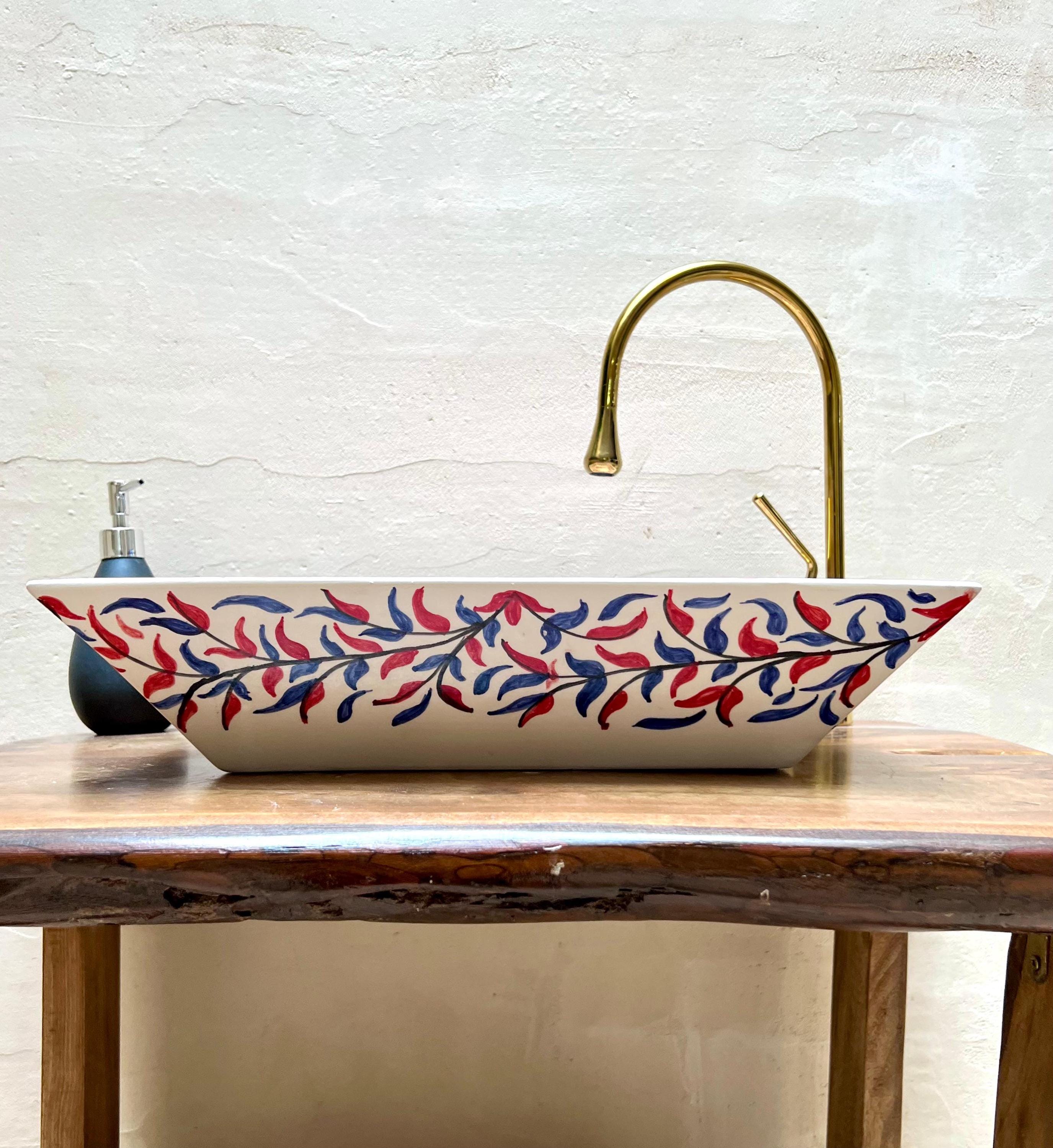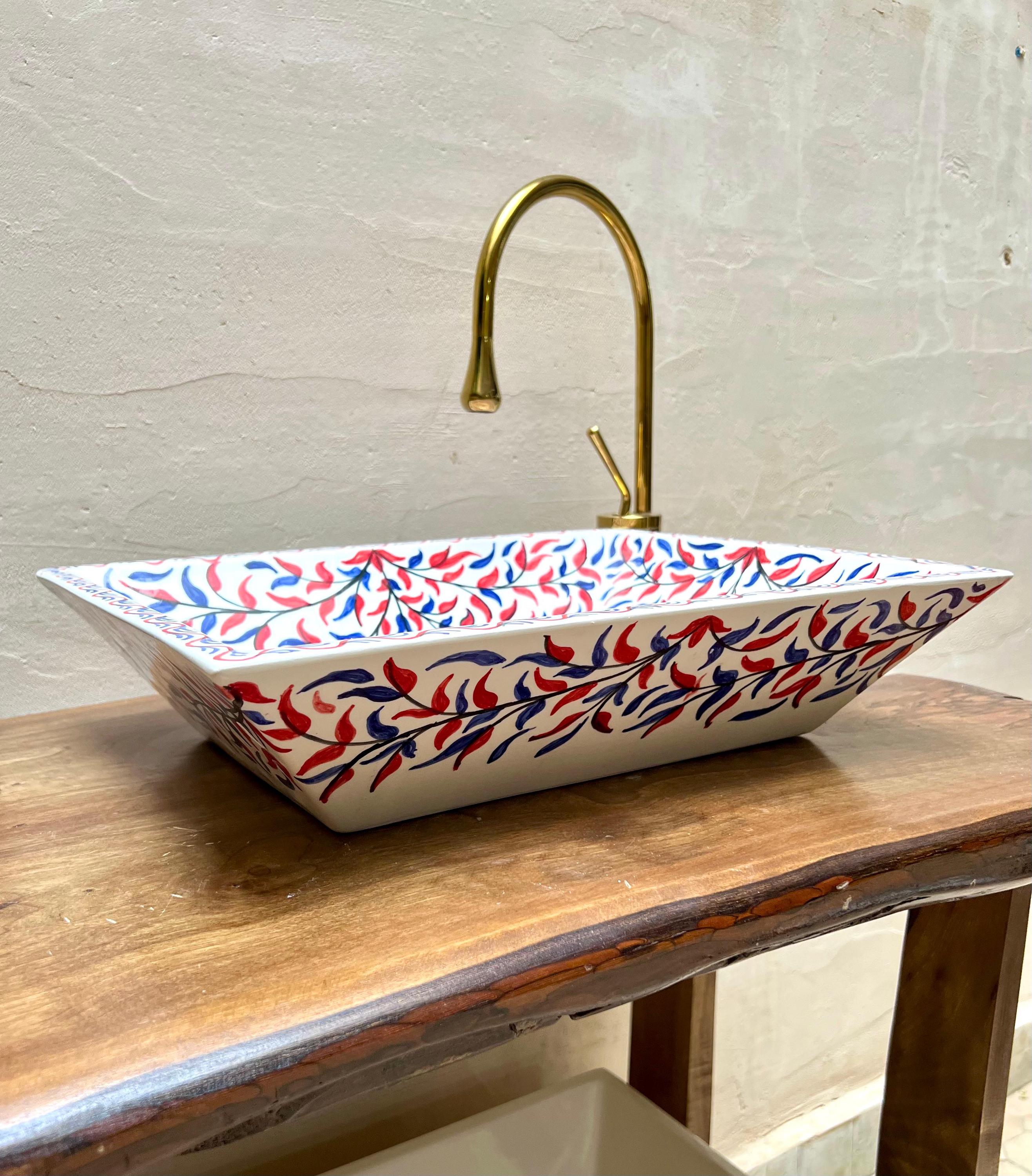 Handmade Moroccan Ceramic Sink: Olive Leaves Design
