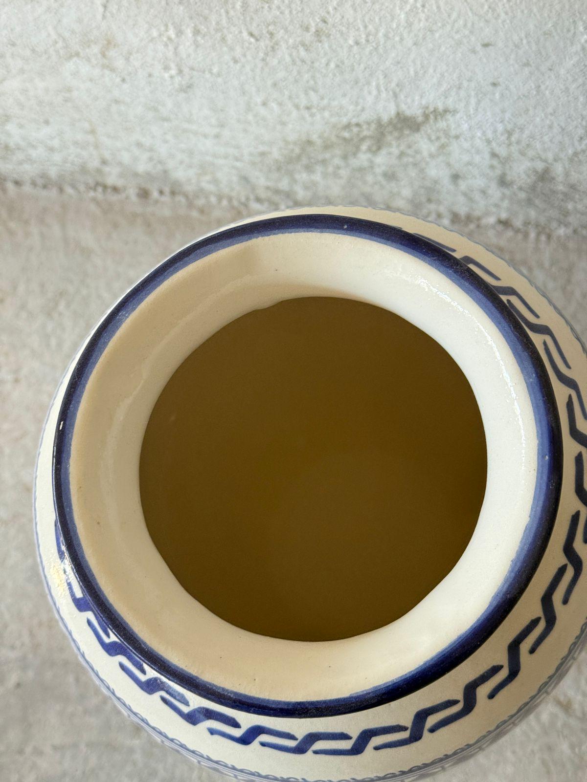 The glossy glazed finish enhances the rich blue tones while ensuring durability and easy maintenance. This vase pairs effortlessly with boho, coastal, modern, or classic interiors, adding warmth and authenticity to your space. Each vase is 100% handmade, meaning slight variations in brushwork and glaze are part of its unique charm — no two pieces are exactly alike.