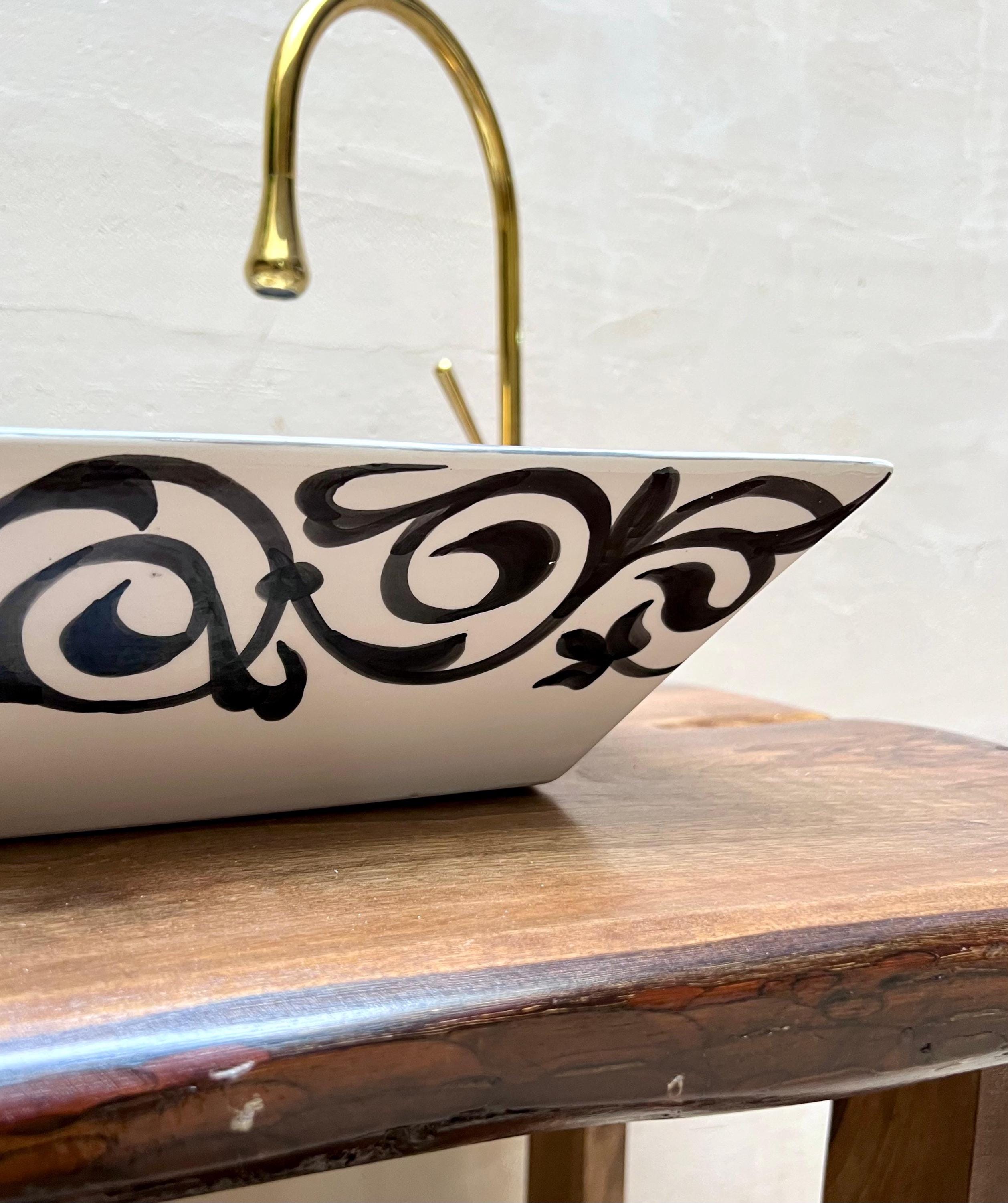 Handmade Moroccan Ceramic Sink: Black Snail Design