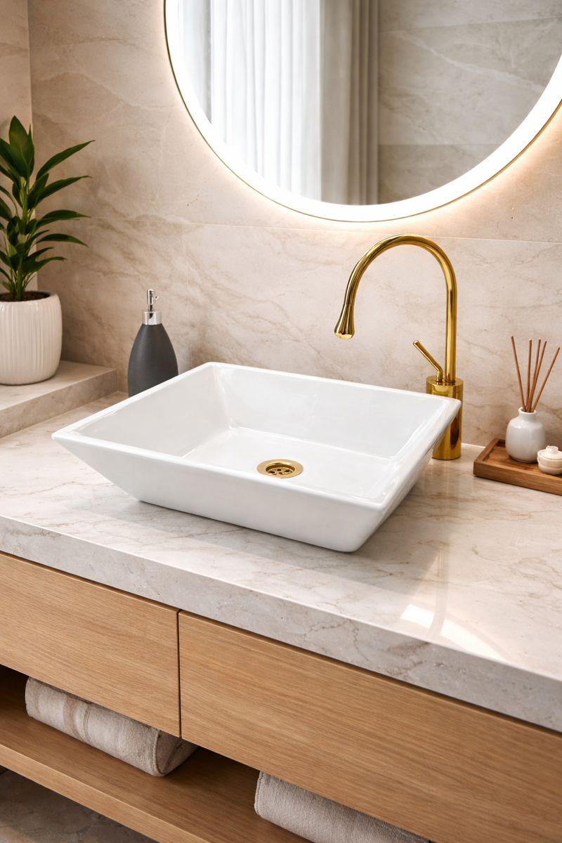Perfect for large bathrooms, guest bathrooms, or luxury interiors, this sink adds a refined, elegant touch without overpowering the space. A versatile design that blends seamlessly with marble, wood, or stone countertops.
