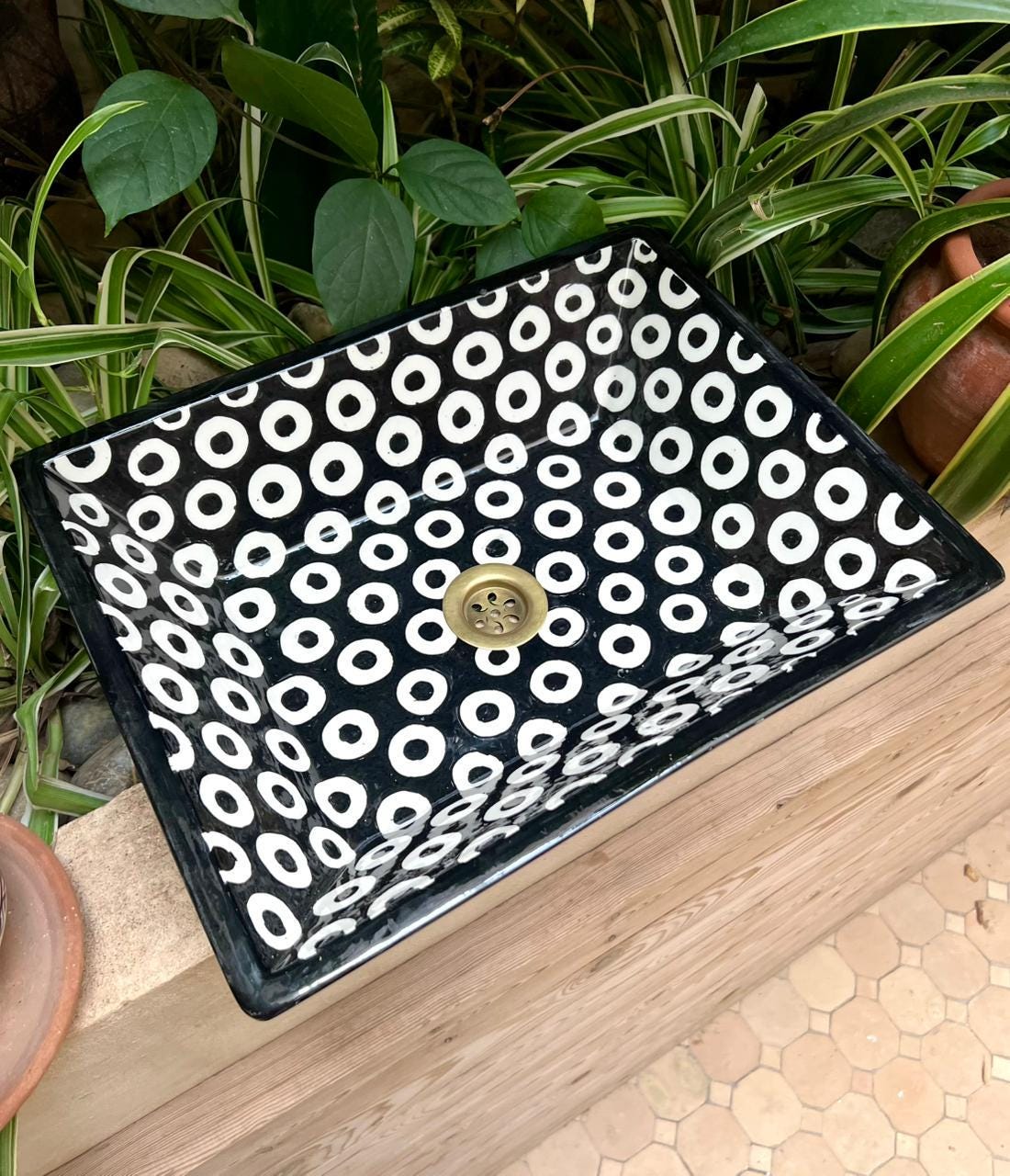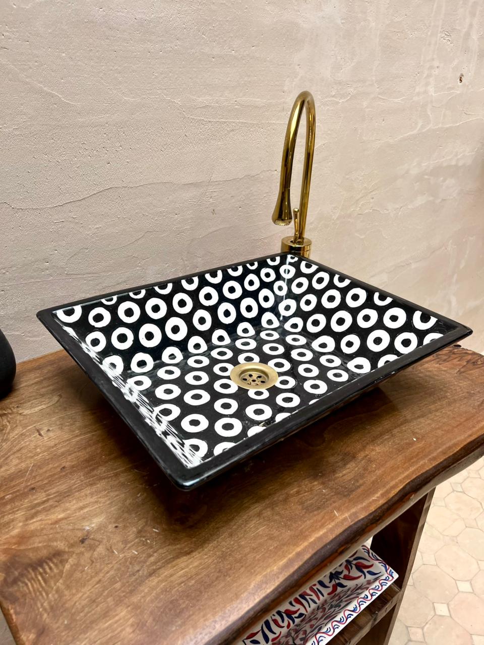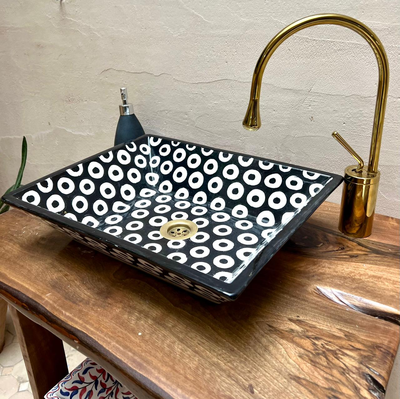 This beautiful Moroccan rectangular sink is handmade by skilled artisans using high-quality ceramic. Featuring traditional hand-painted designs and a smooth glazed finish, it is both durable and easy to clean. Perfect for kitchens, bathrooms, or powder rooms, it adds a unique touch of Moroccan charm to any space. The sink comes with both silver and copper drains included for free. If you need a different size, feel free to contact us.