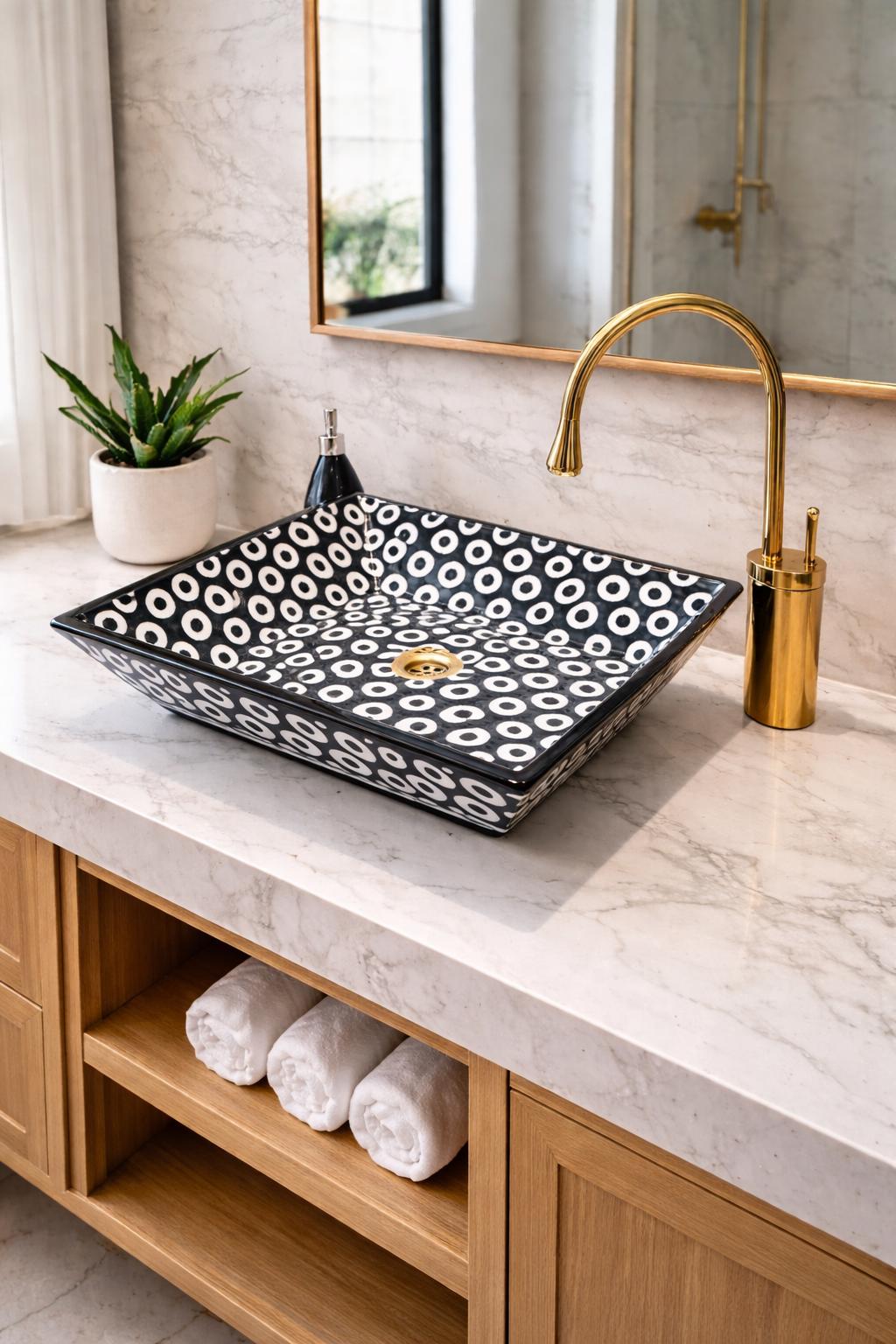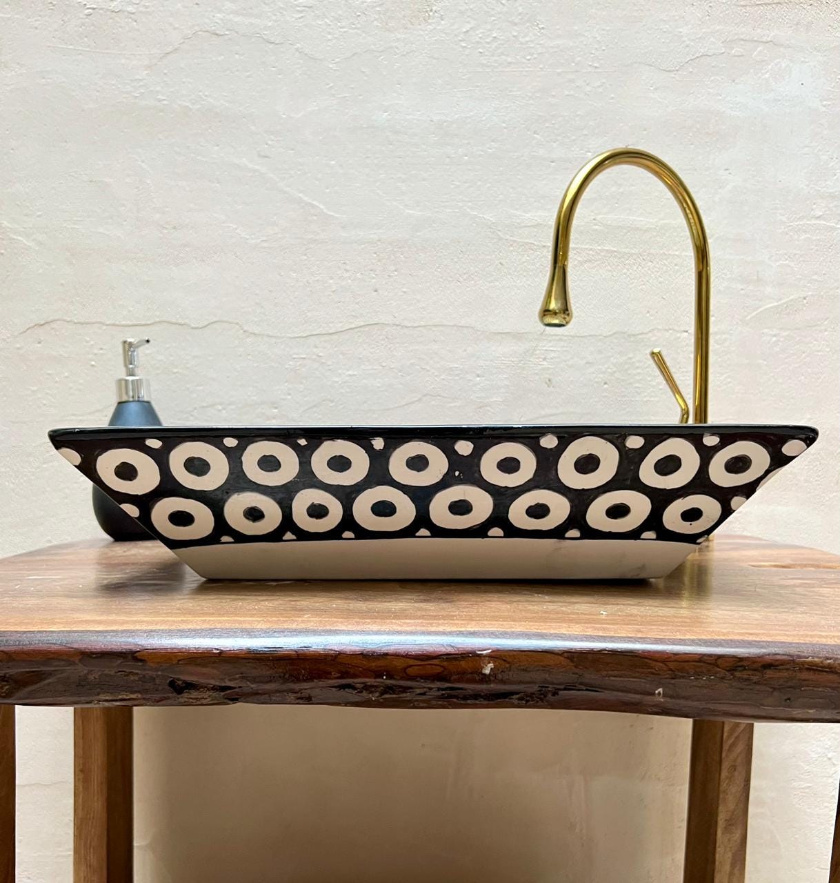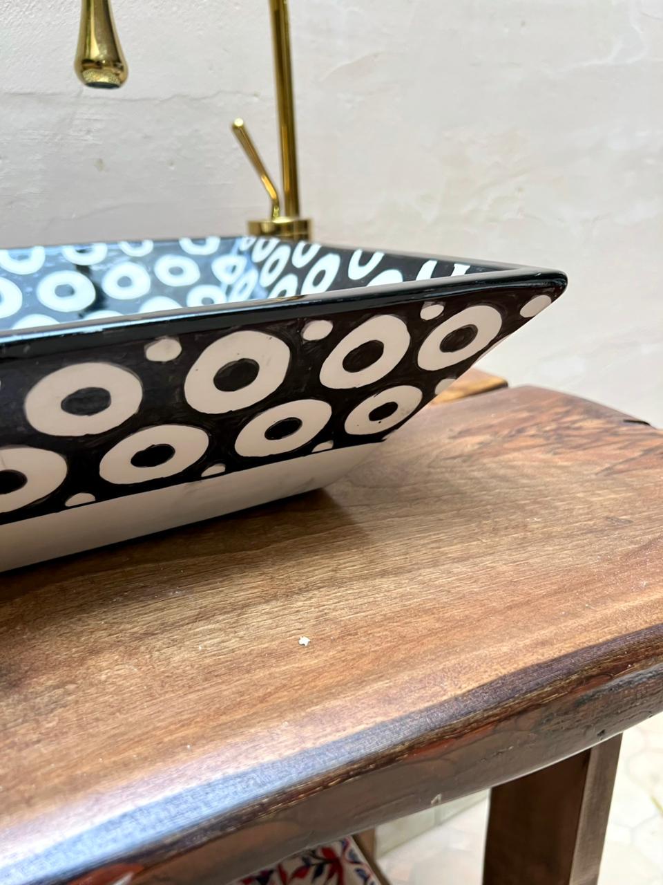 This beautiful Moroccan rectangular sink is handmade by skilled artisans using high-quality ceramic. Featuring traditional hand-painted designs and a smooth glazed finish, it is both durable and easy to clean. Perfect for kitchens, bathrooms, or powder rooms, it adds a unique touch of Moroccan charm to any space. The sink comes with both silver and copper drains included for free. If you need a different size, feel free to contact us.