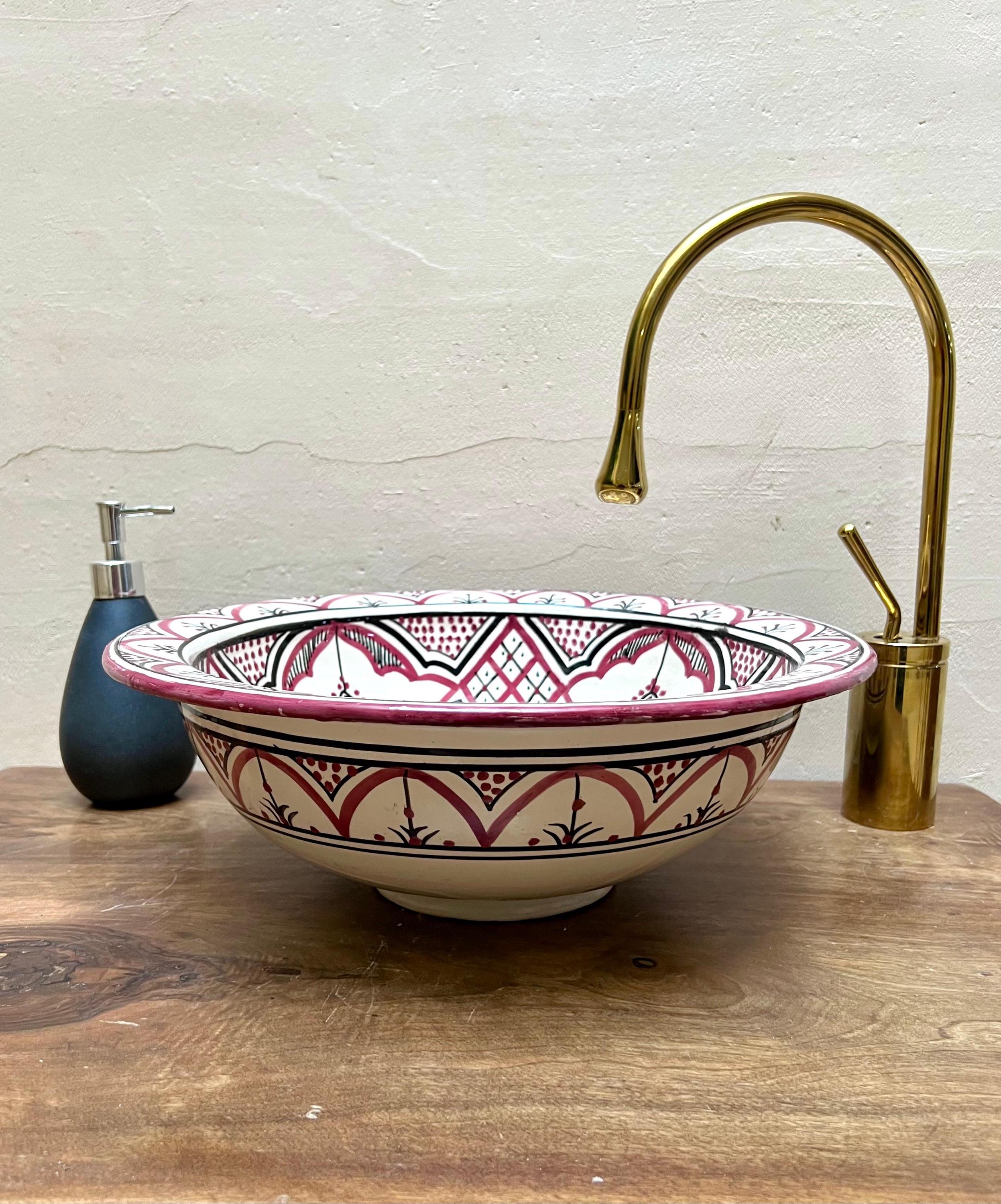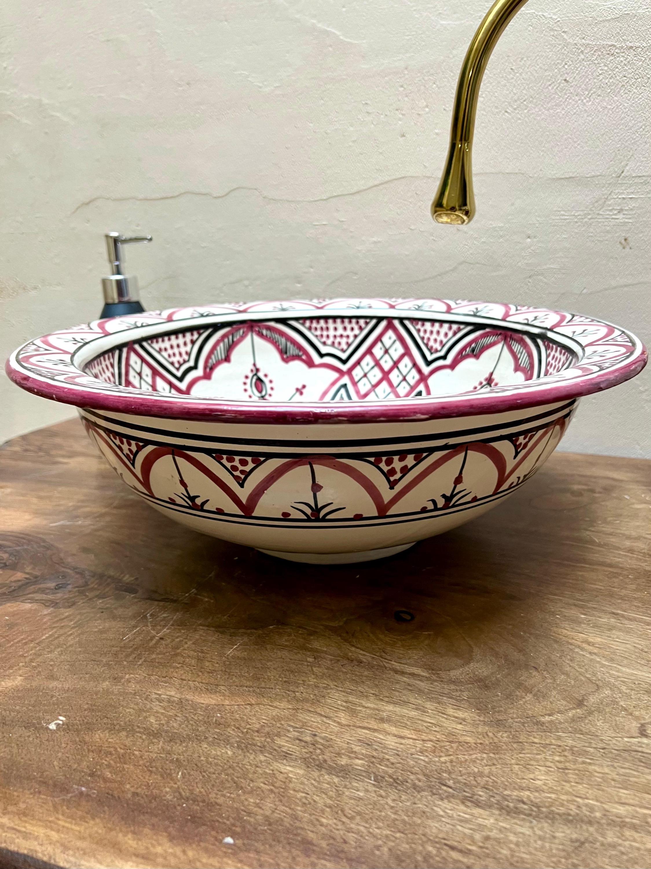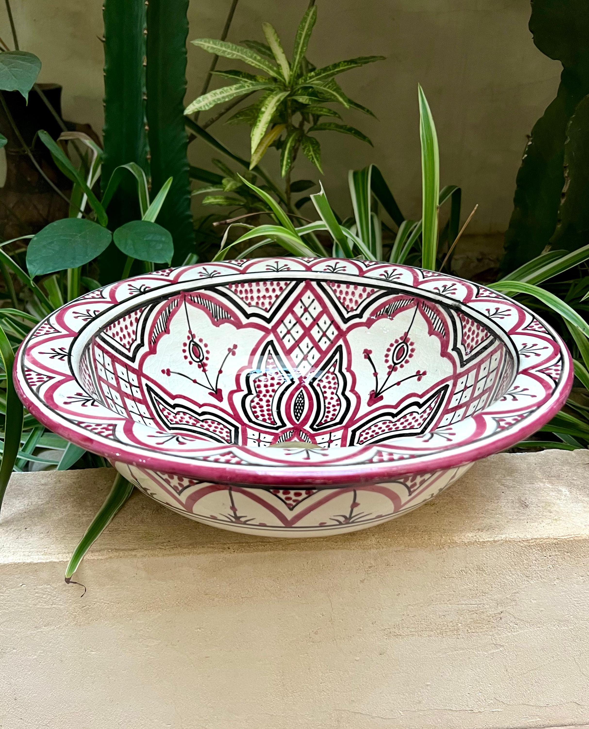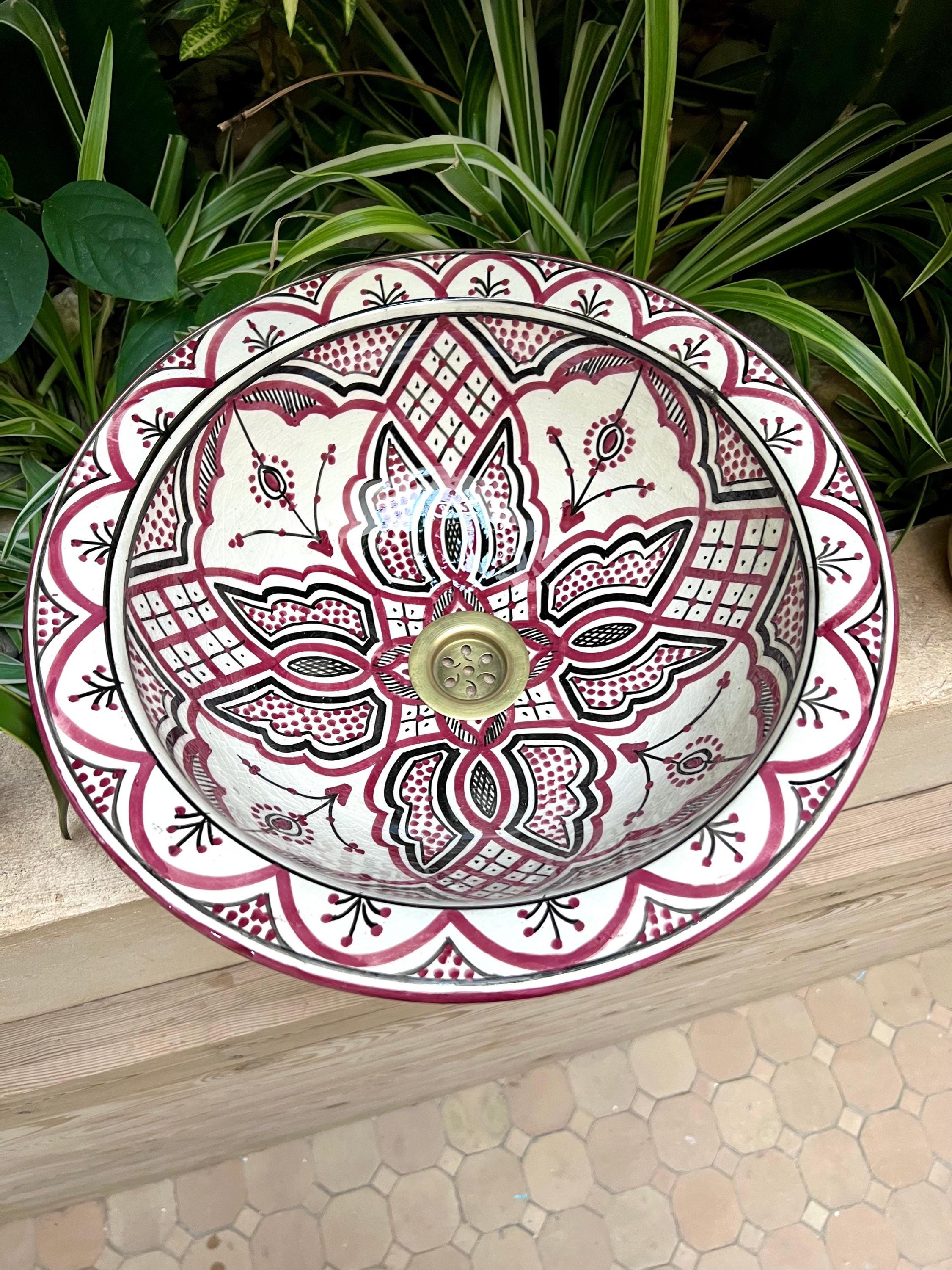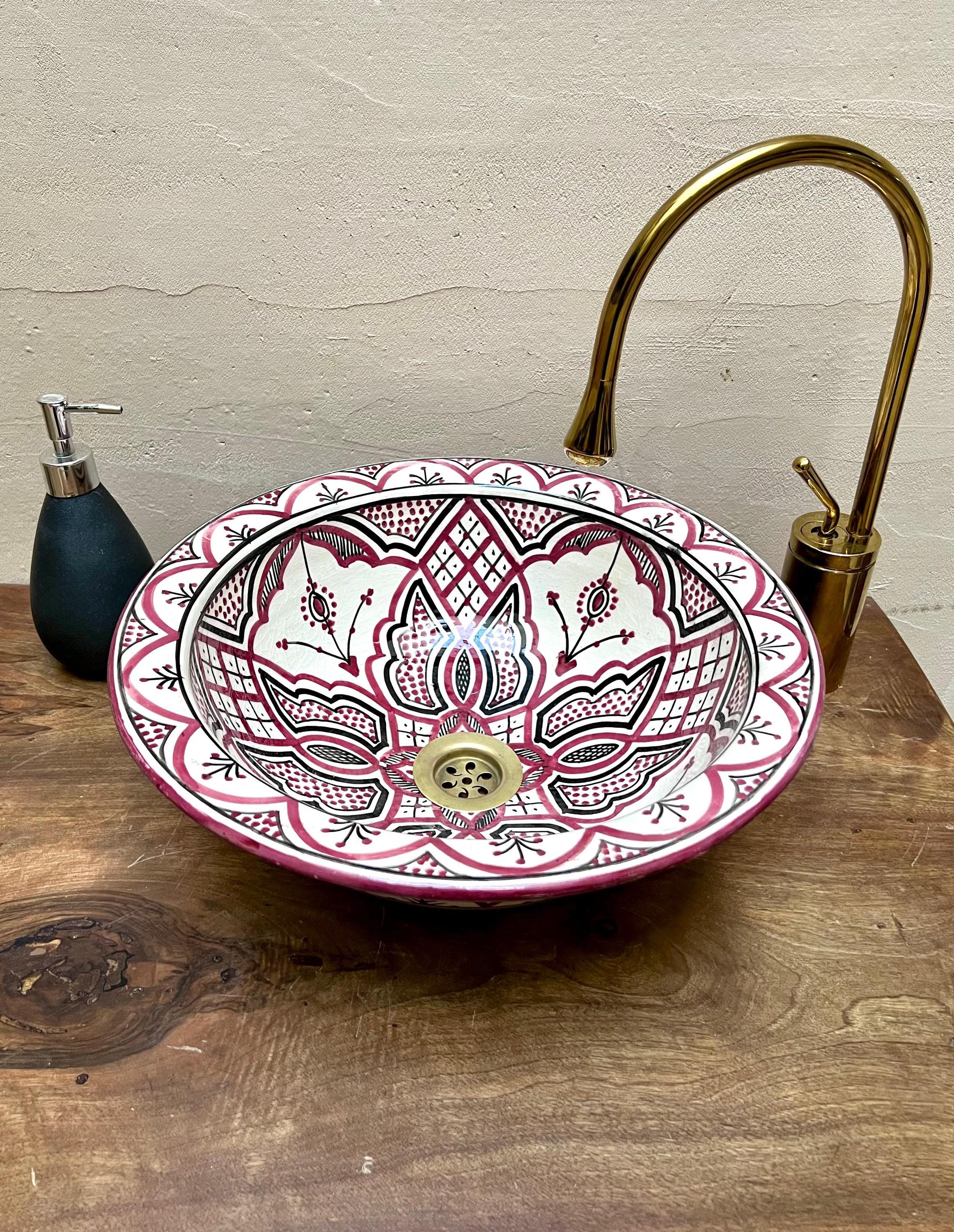 Handmade Moroccan Ceramic Sink: Purple Pink Berber Design Sink with Rim, Free Drains