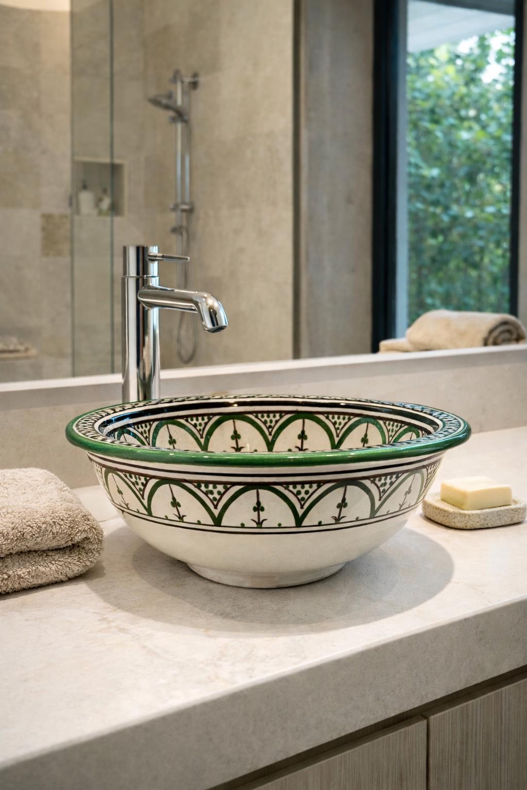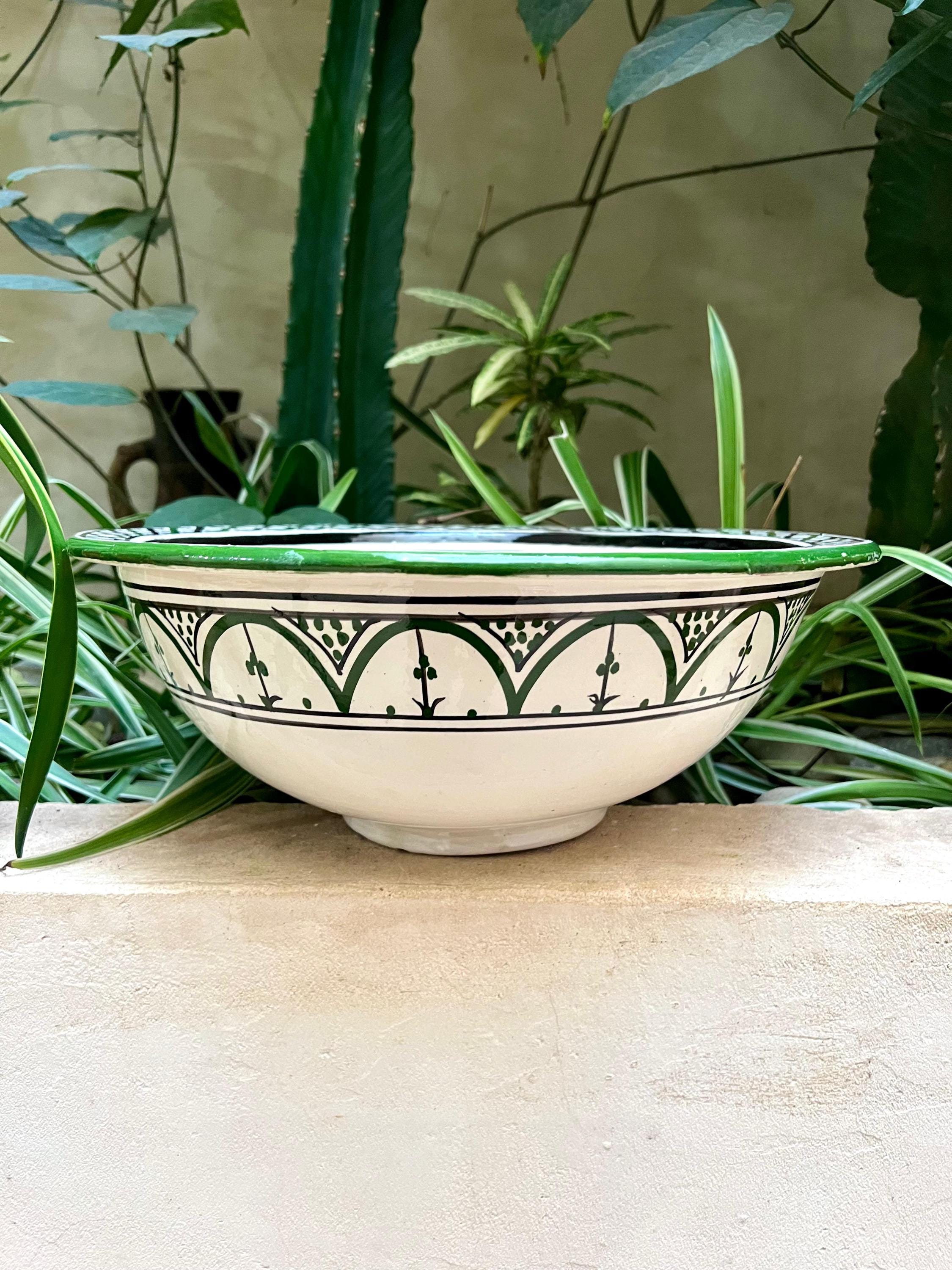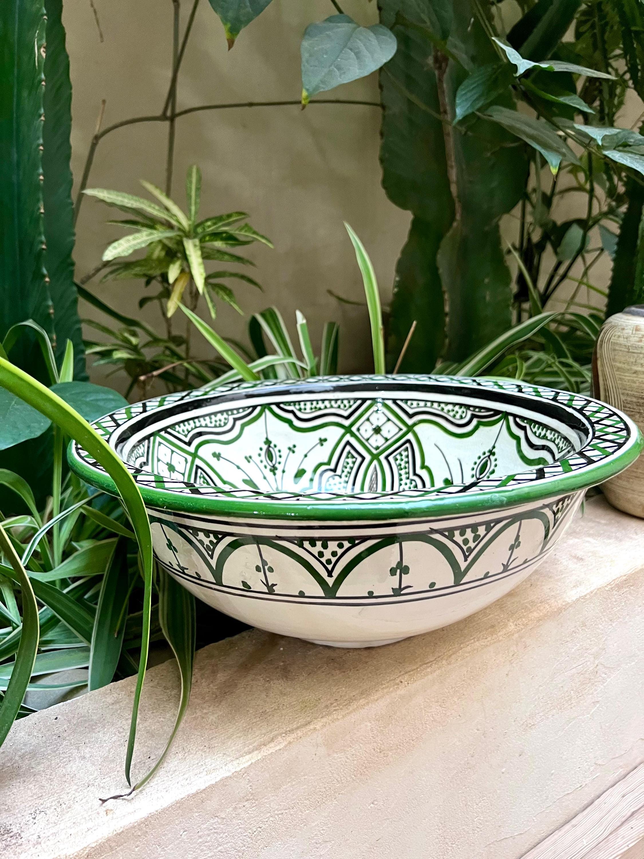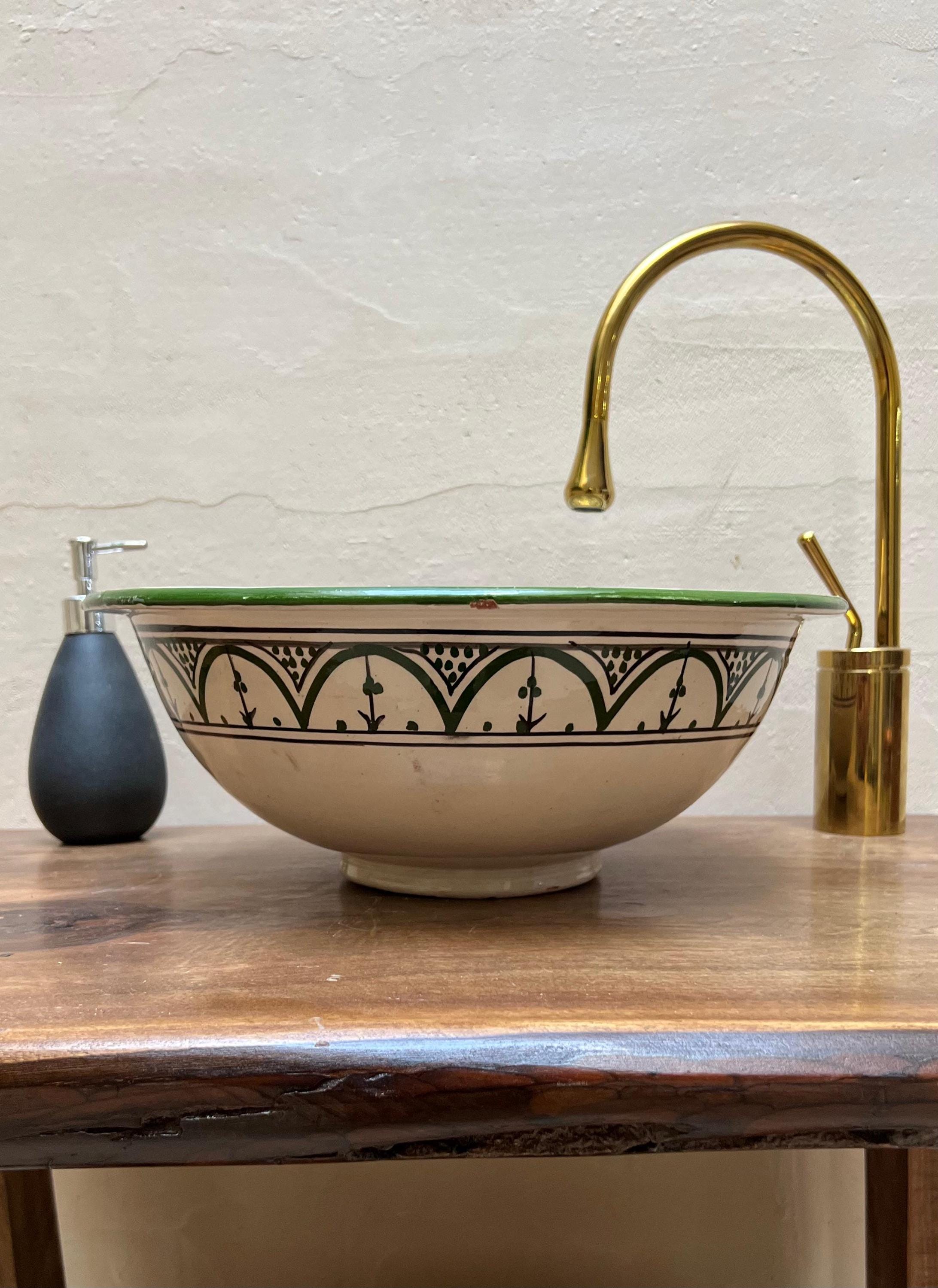 Handmade Moroccan Ceramic Sink: Green Berber Design Sink with Rim, Free Drains