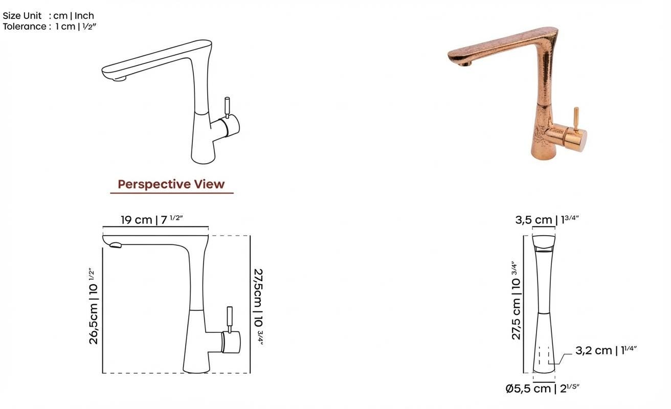 📏 Specifications: Total Height: 27,5cm / 10 in Spout Reach: 26,5 cm / 10 in Width : 10cm / 3.9in