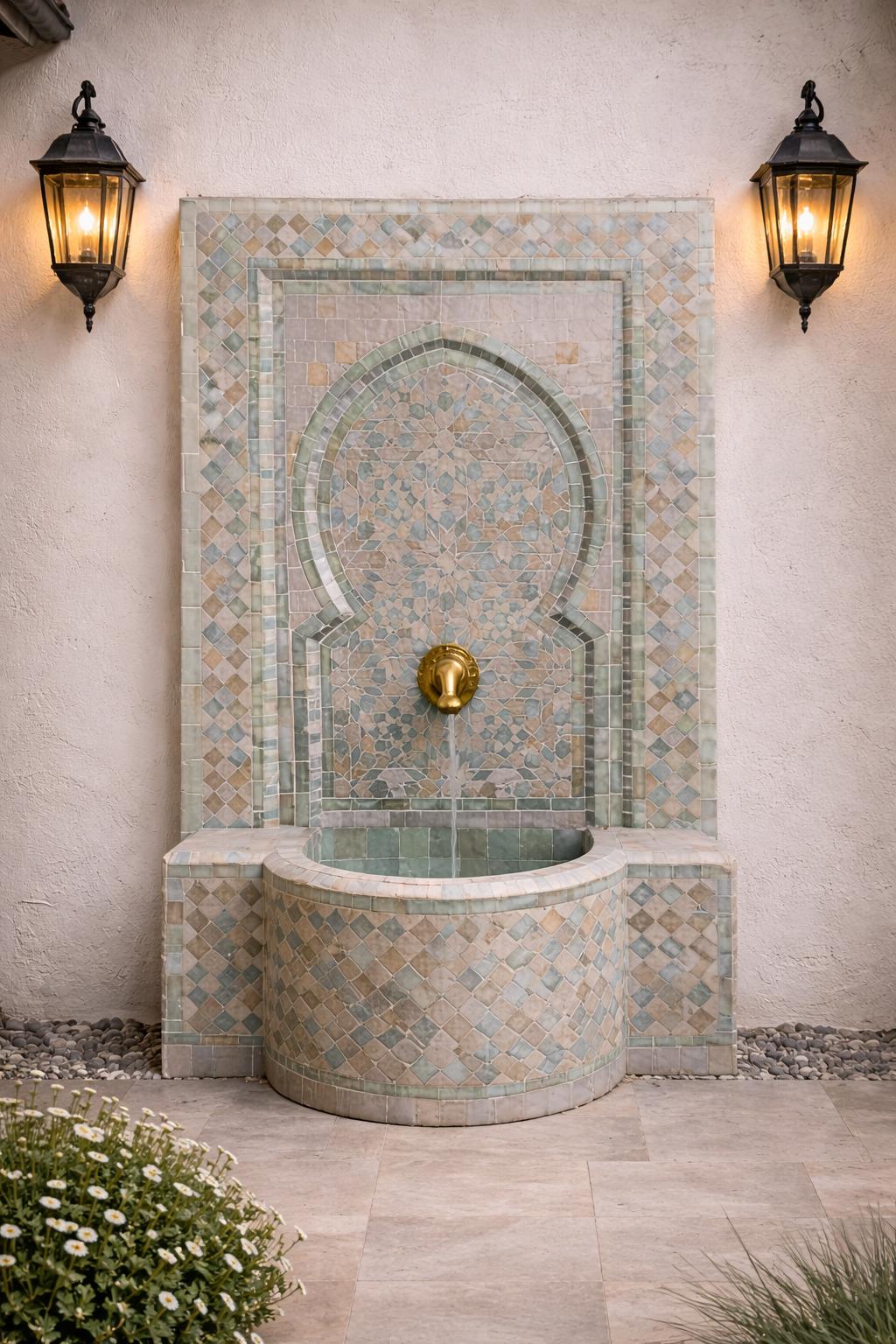 Handmade Moroccan Mosaic Fountain: Zellige Tile Water Feature