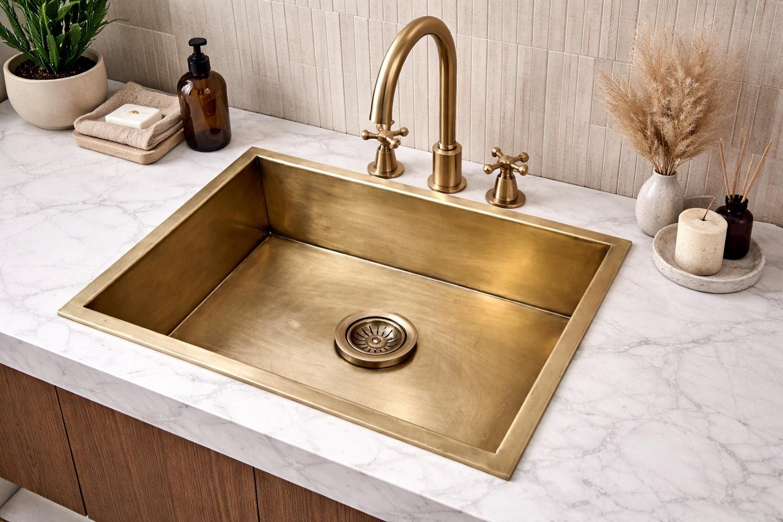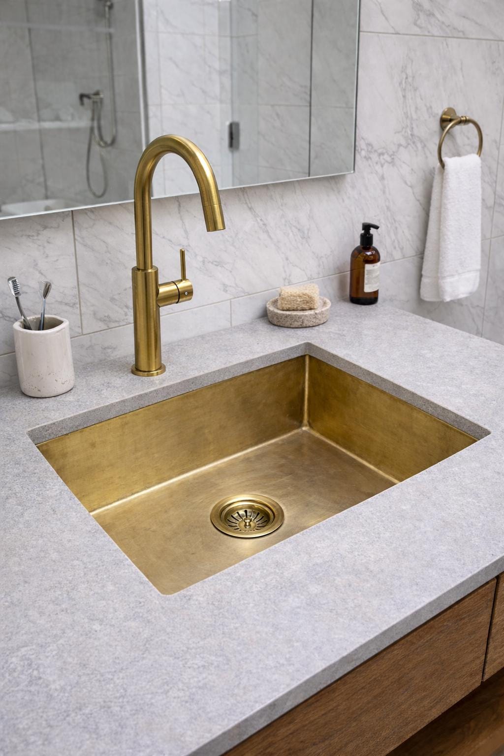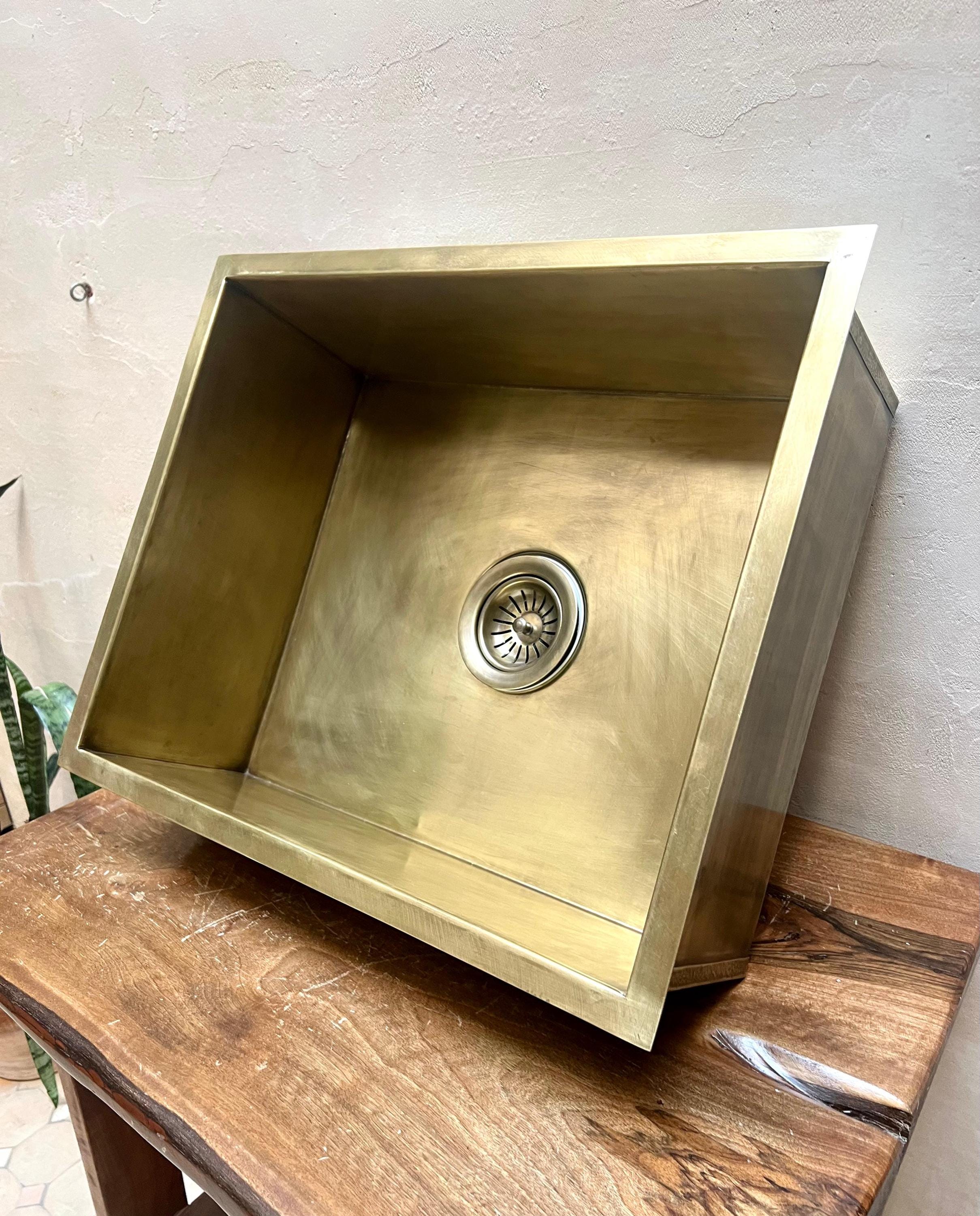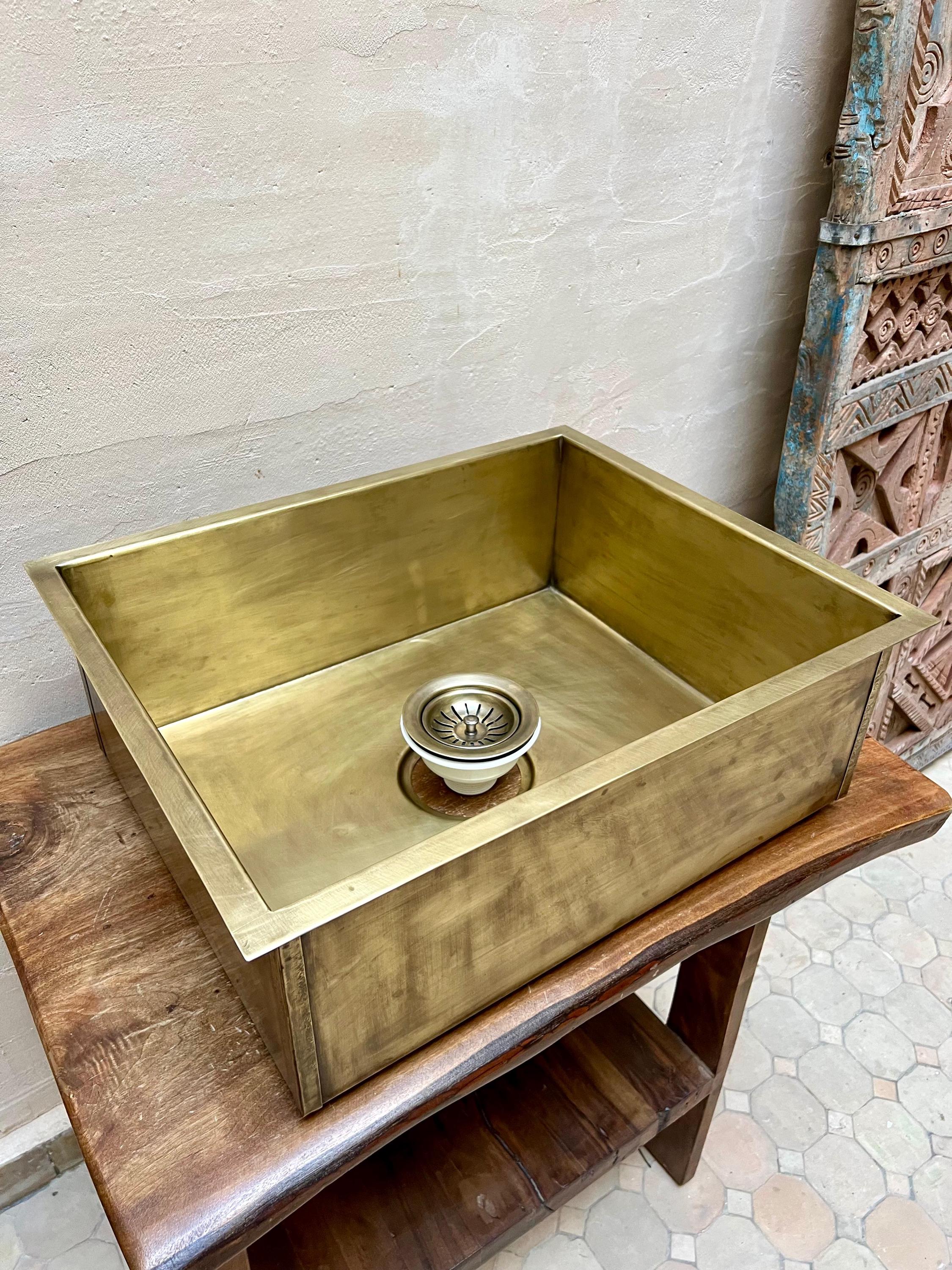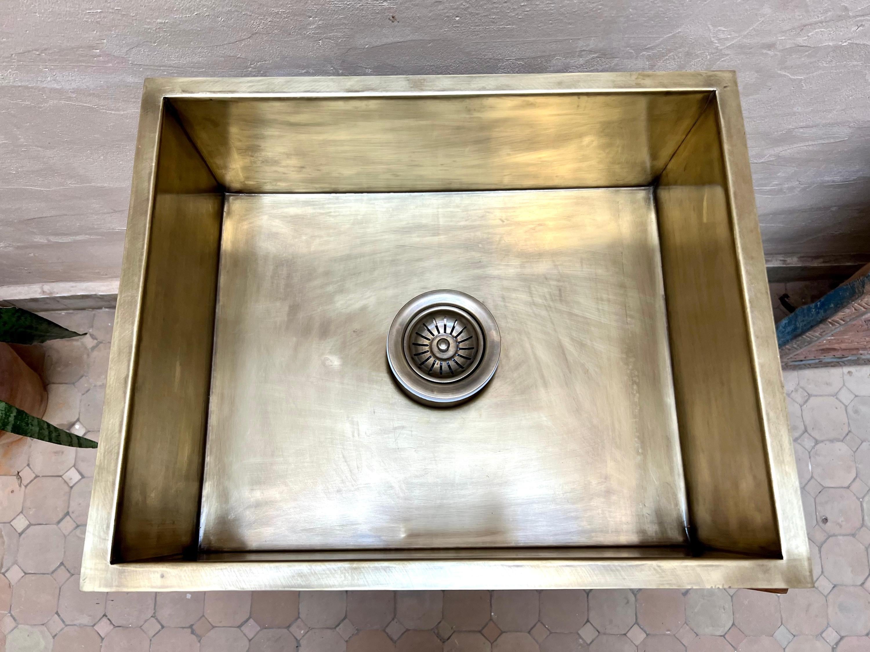 Carefully made by skilled Moroccan artisans using traditional metalworking techniques, each sink showcases warm golden tones and authentic craftsmanship. The unlacquered brass develops a rich, organic patina that adds depth and individuality, making it a striking focal point in any kitchen or bar area.