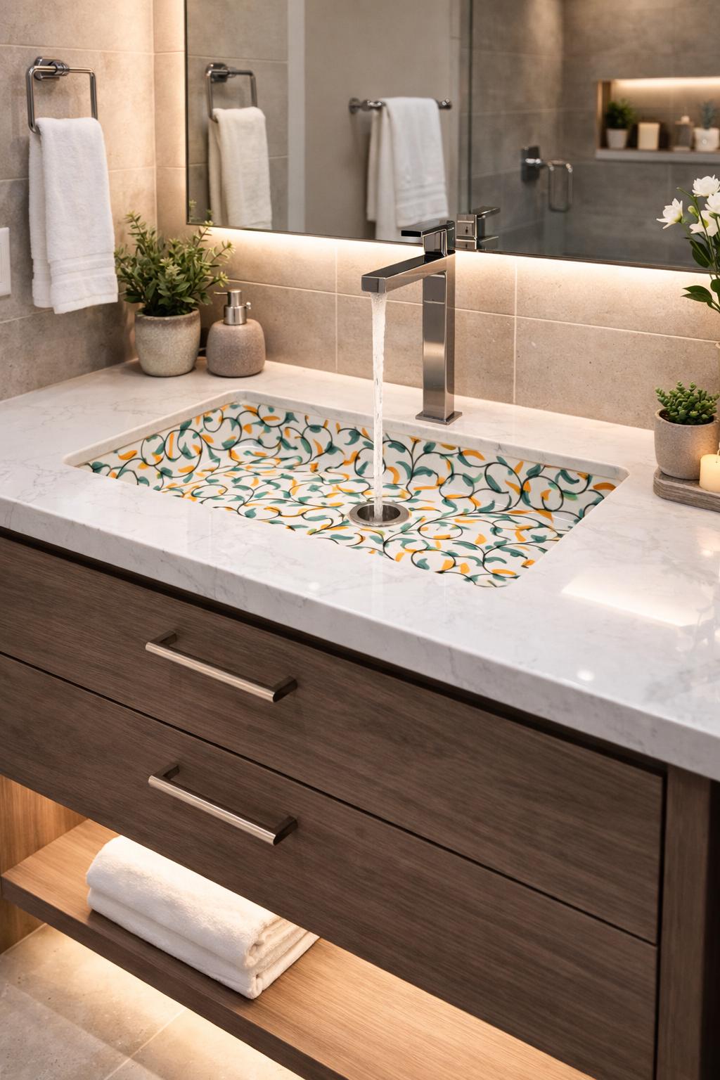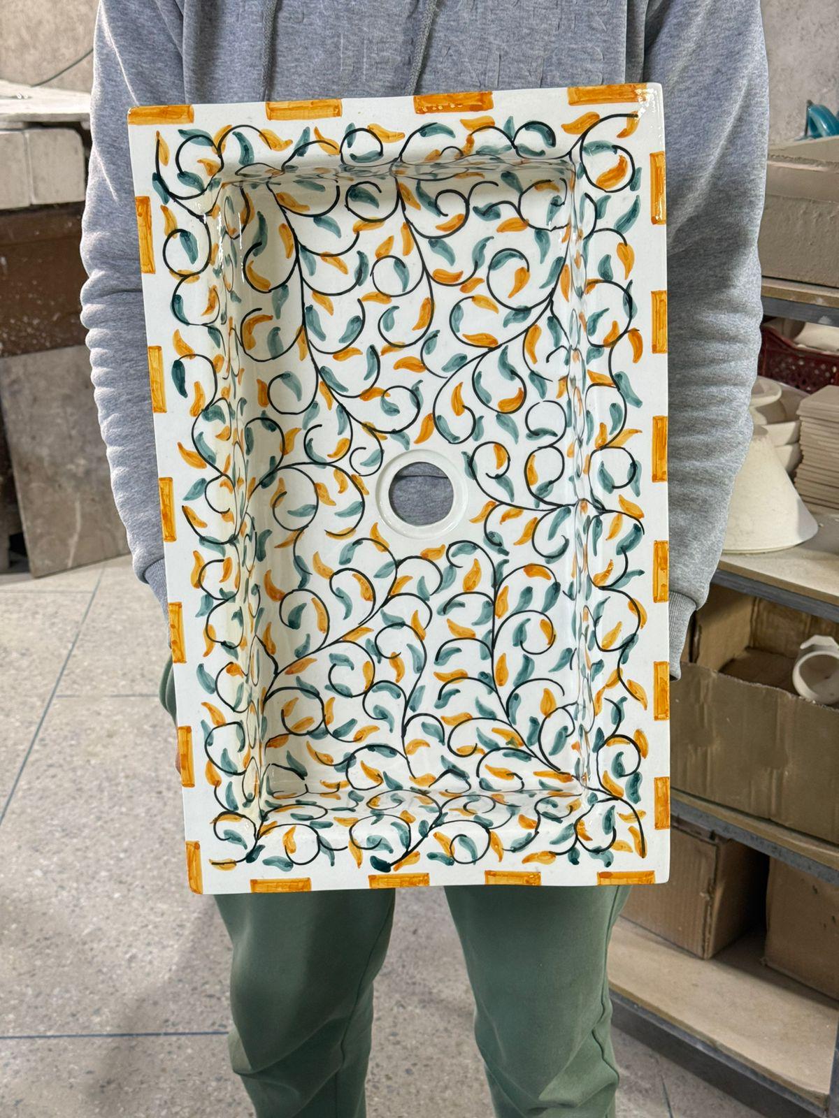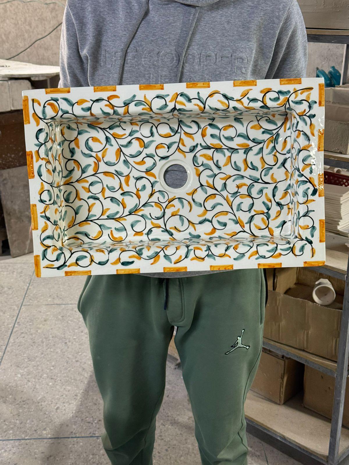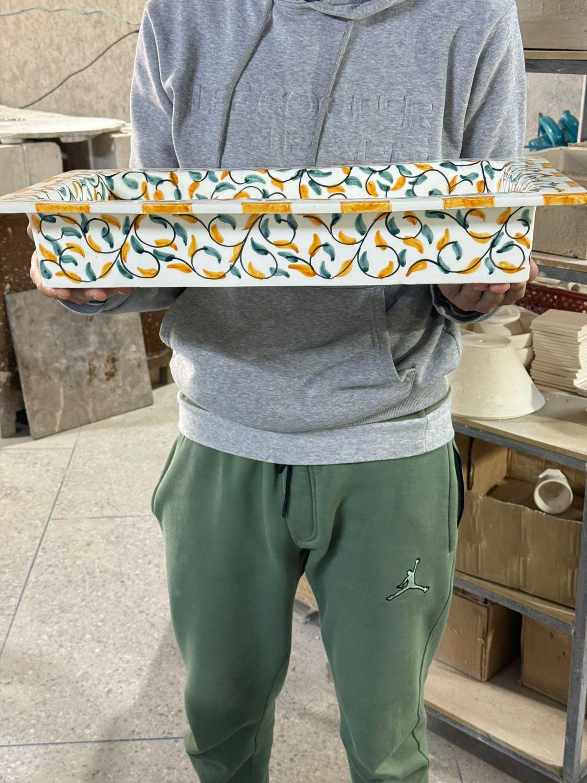 Handmade Moroccan Ceramic Sink: Leaf Design with Rim